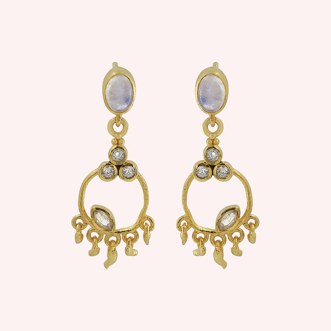 925 Sterling Silver Designer Dangle Earrings with Moonstone & White Topaz