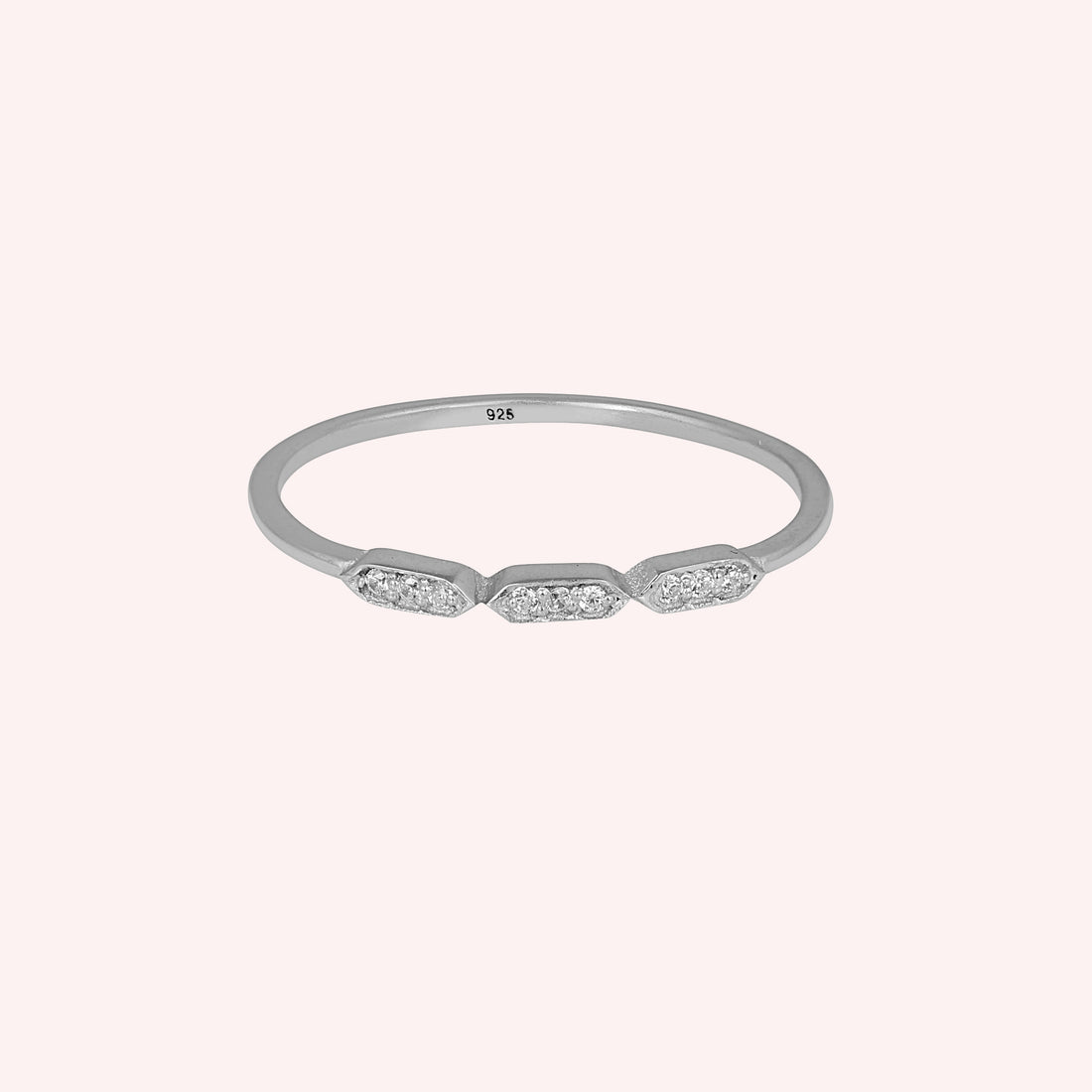 Elegant 925 Sterling Silver Triple White Topaz Dainty Band Ring