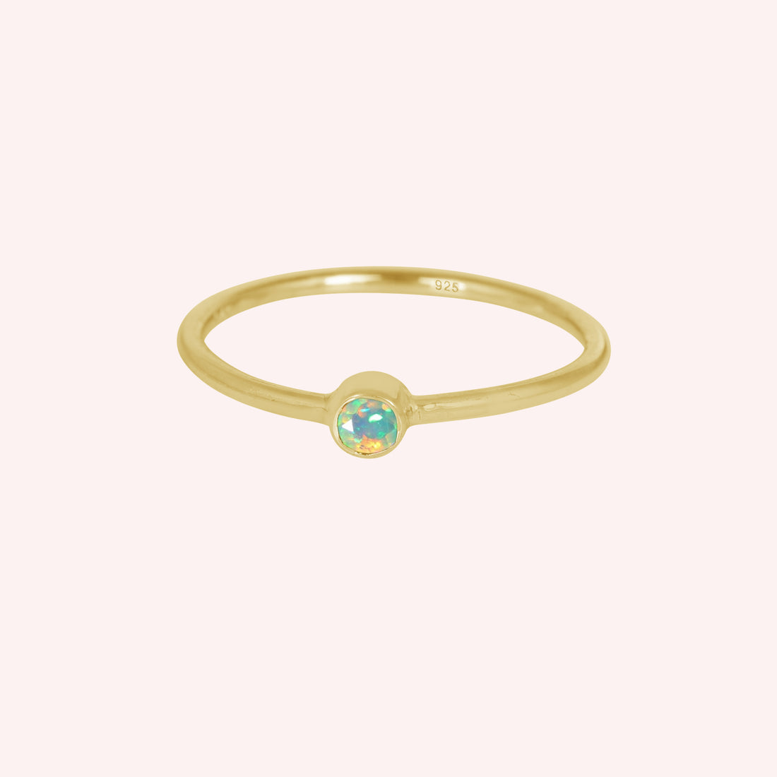 925 Sterling Silver Opal & White Topaz Adjustable Dainty Ring