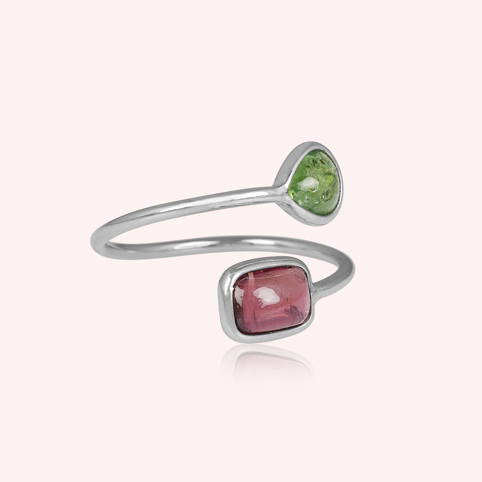 925 Sterling Silver Green and Pink Tourmaline Bypass Ring