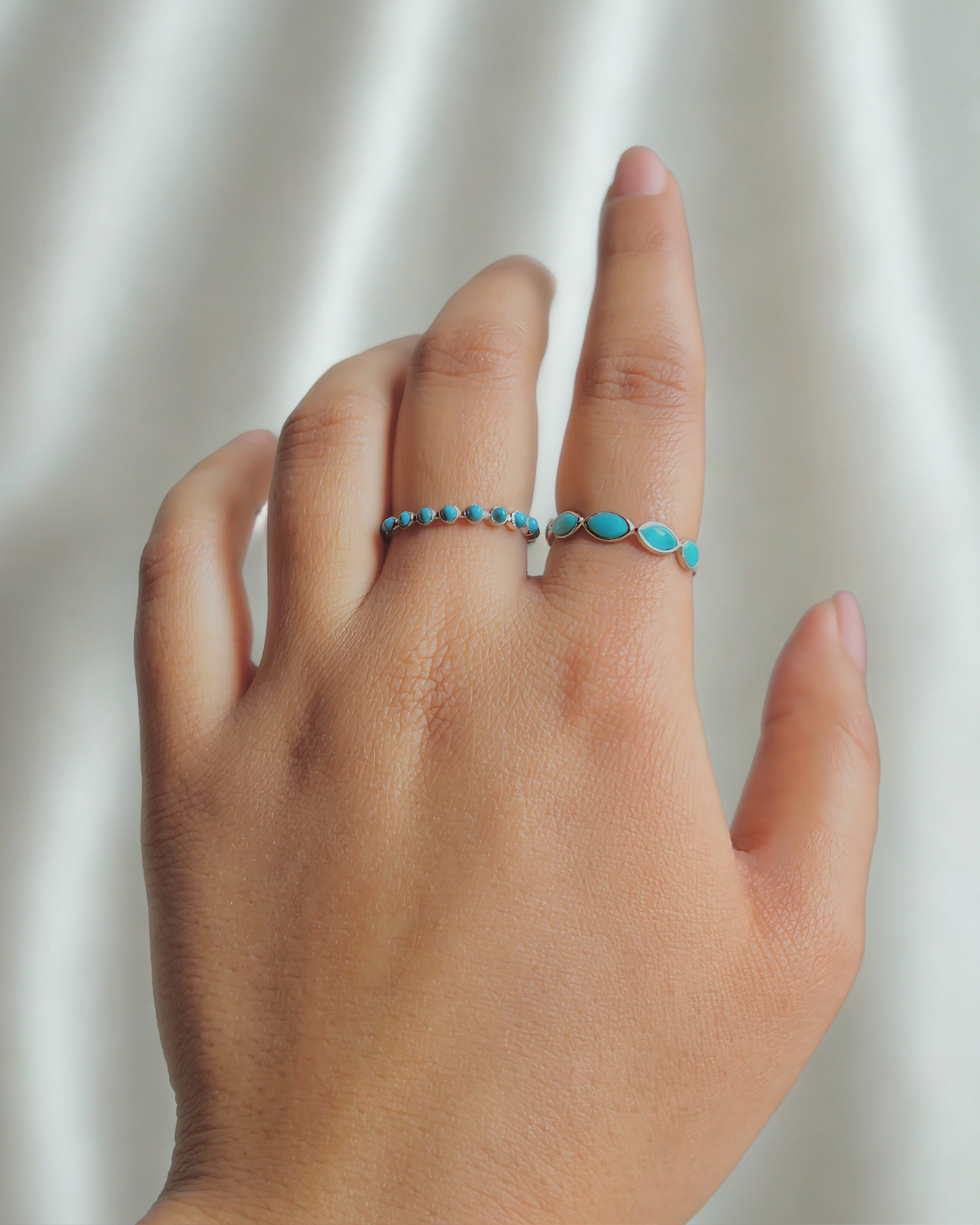 Natural Arizona Turquoise Marquise Full Eternity Band Ring