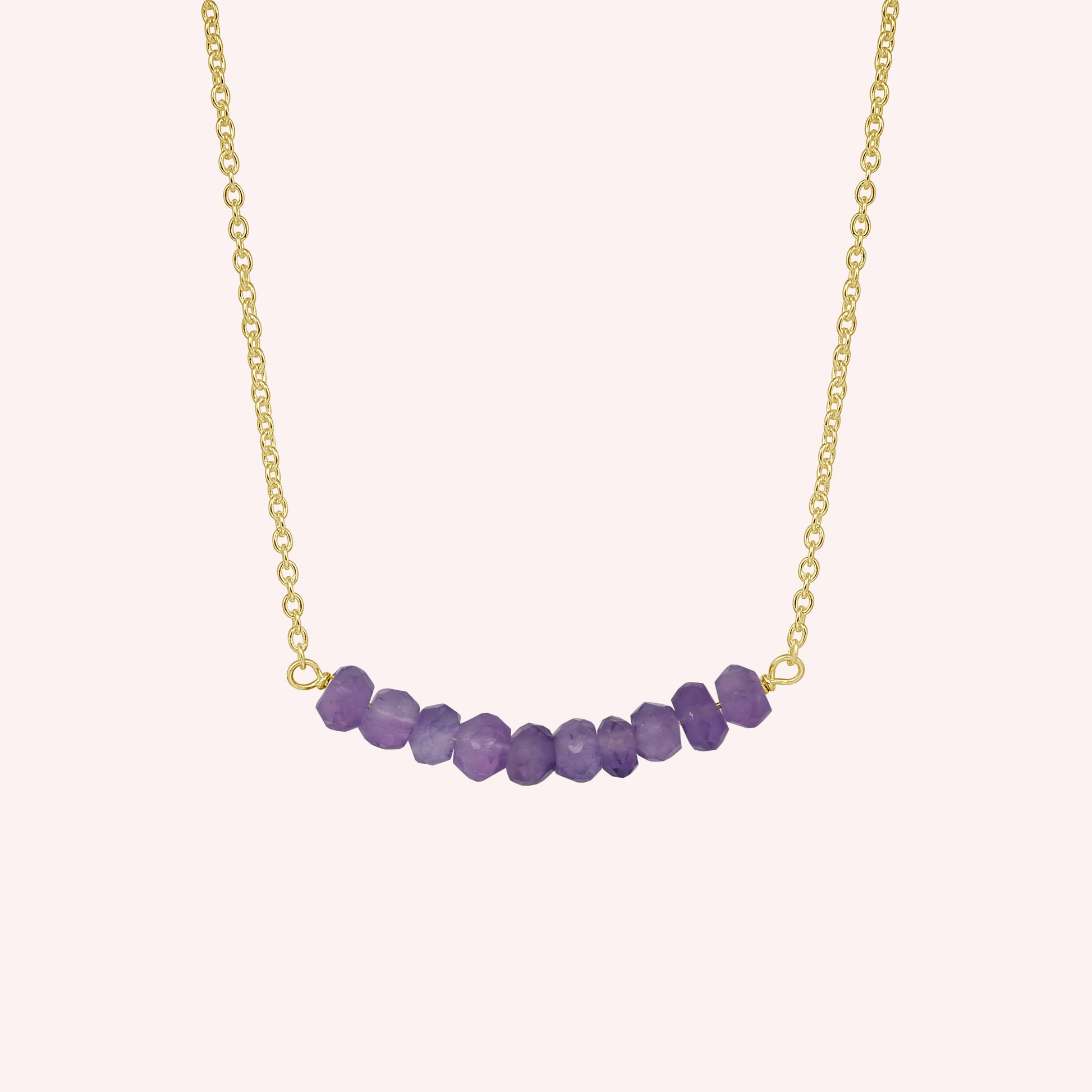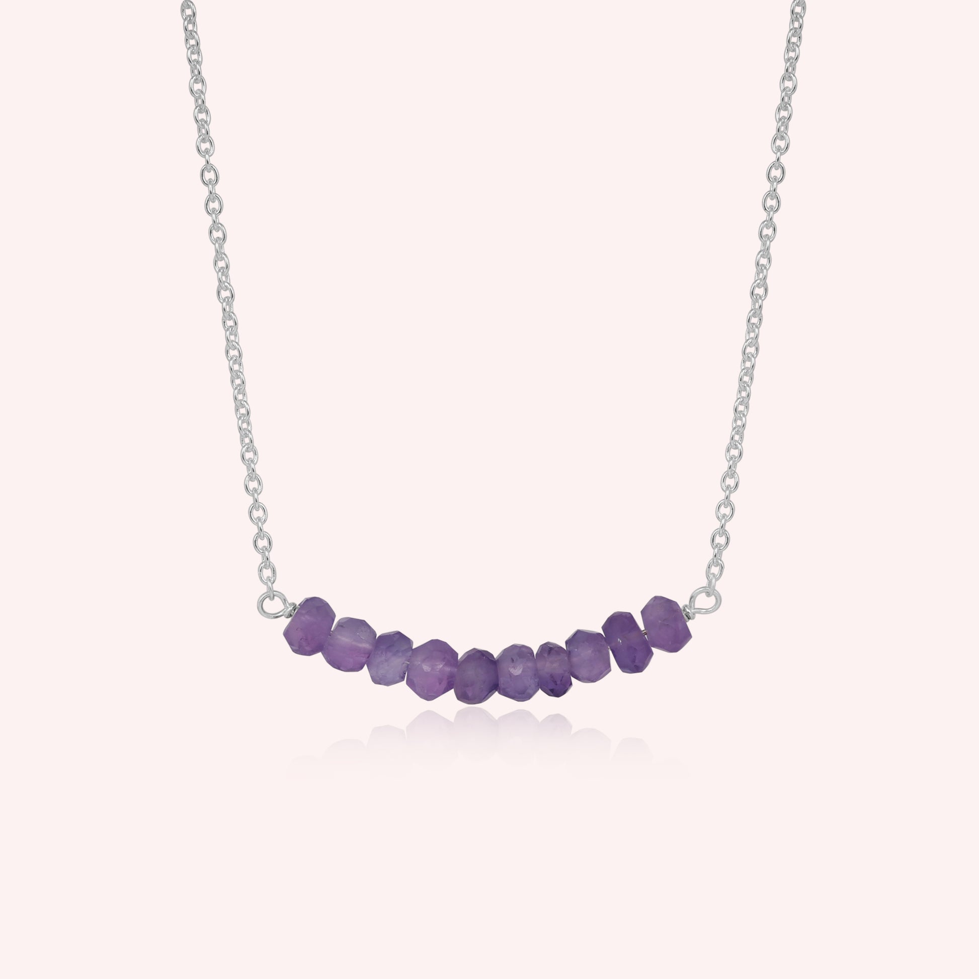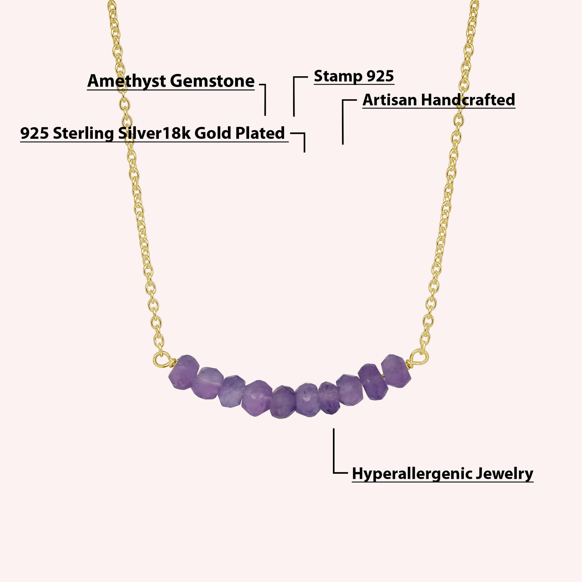 Sterling Silver Minimalist Natural Amethyst Beads Necklace Jewelry for Women