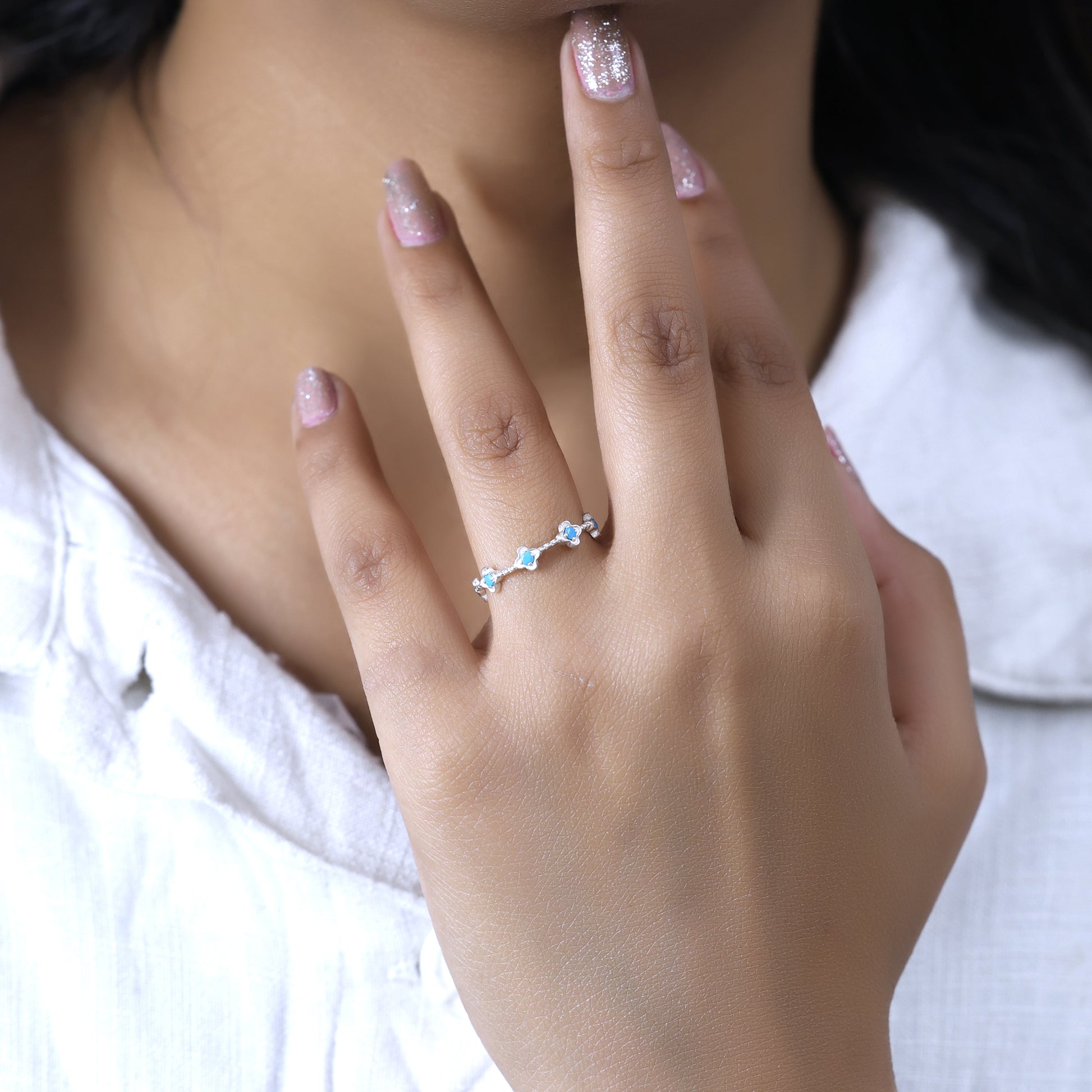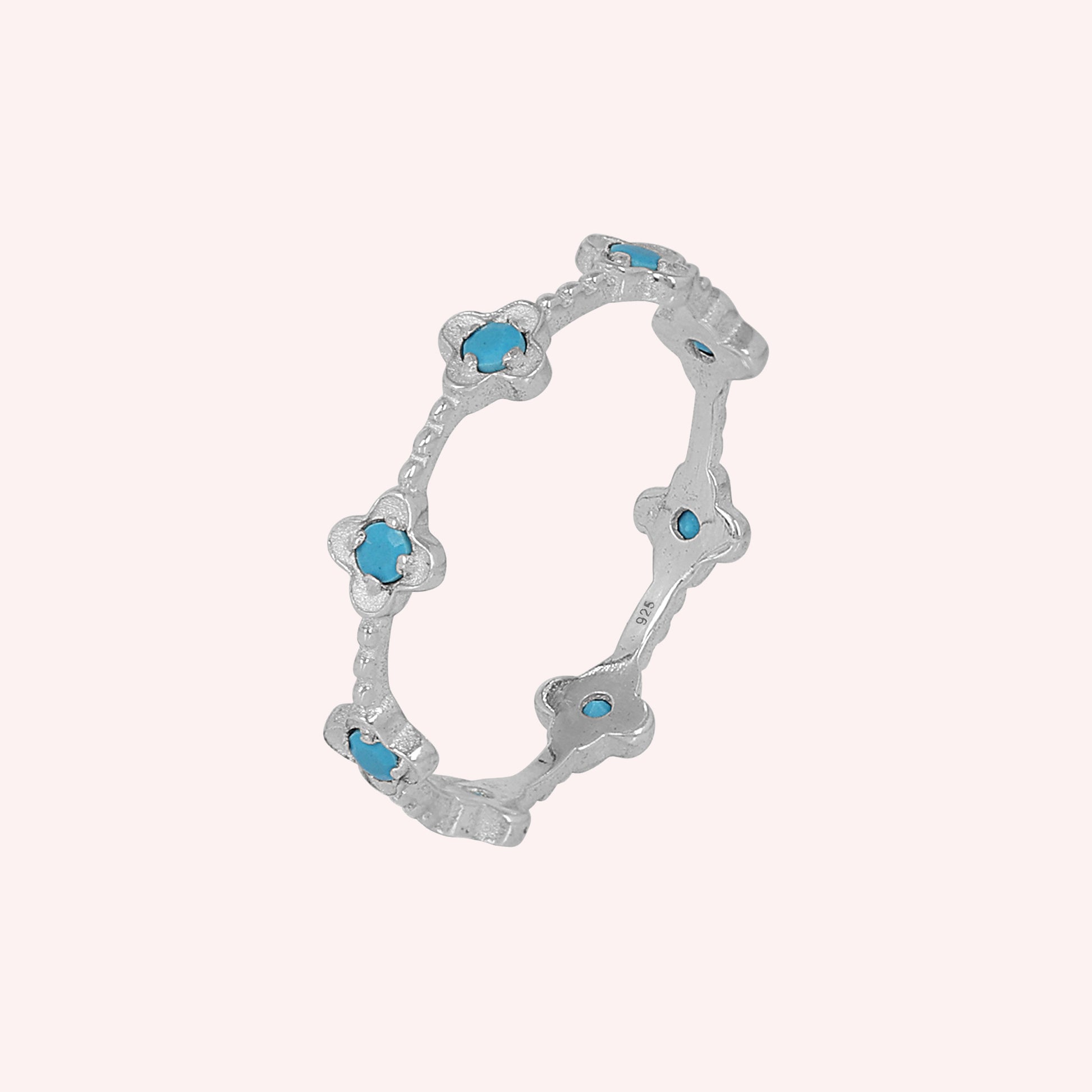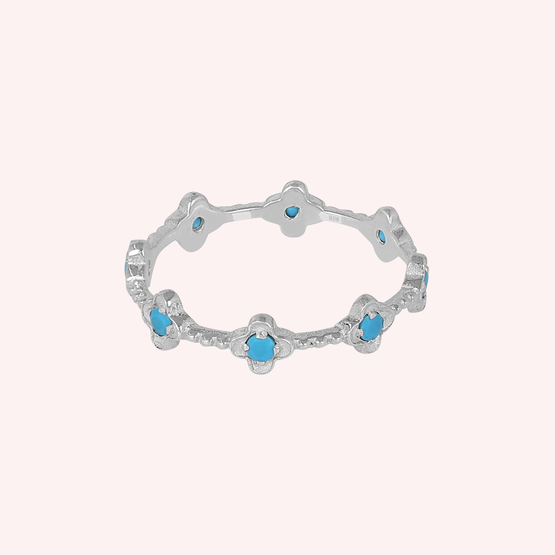 Dainty Turquoise Flower Eternity Ring Jewelry for Women