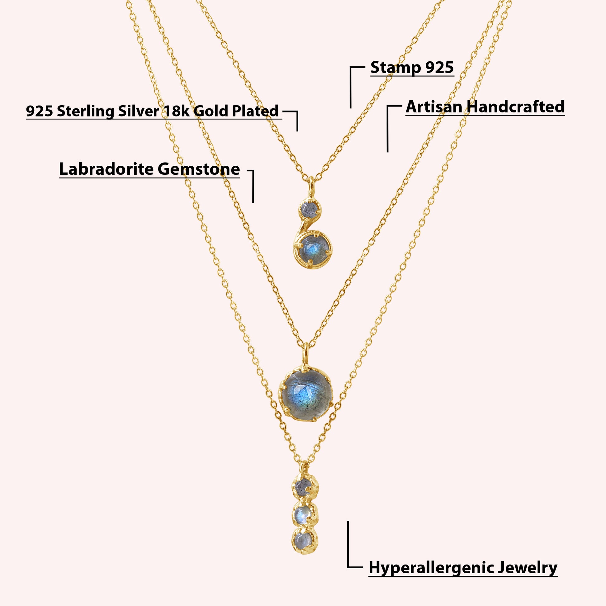 Labradorite Triple Chain Layered Stacking Necklace for Women