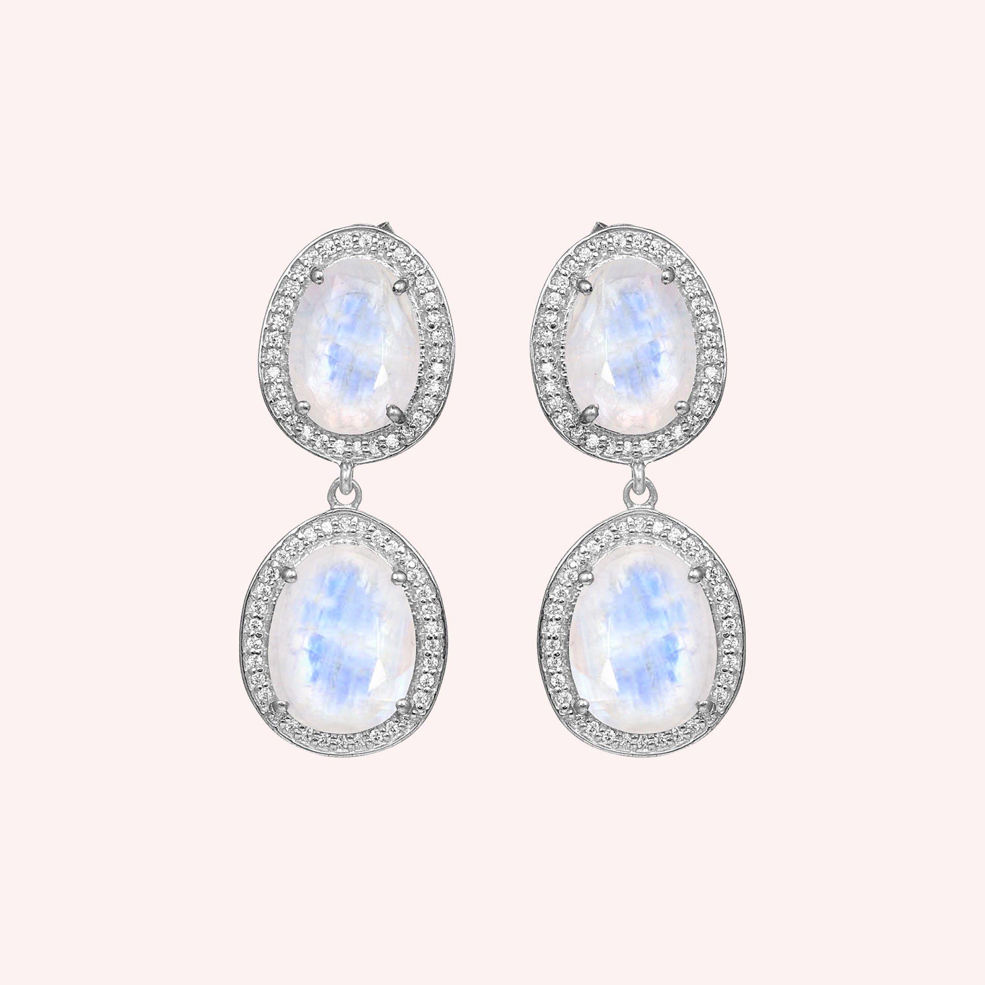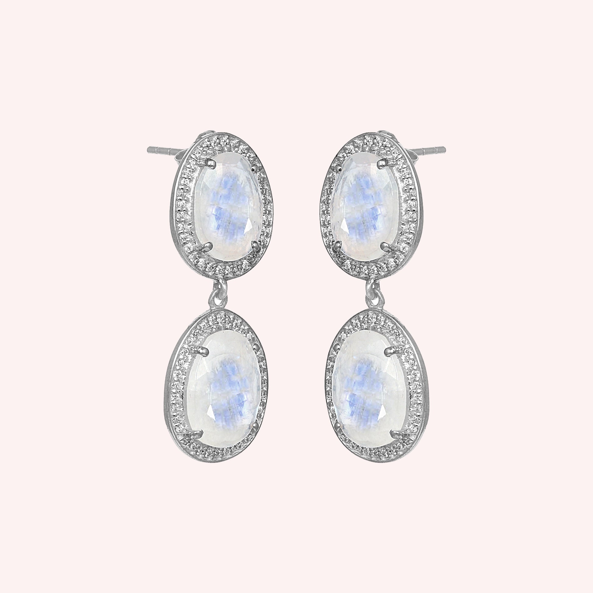 Moonstone Drop Earrings with White Topaz 925 Sterling Silver Jewlery