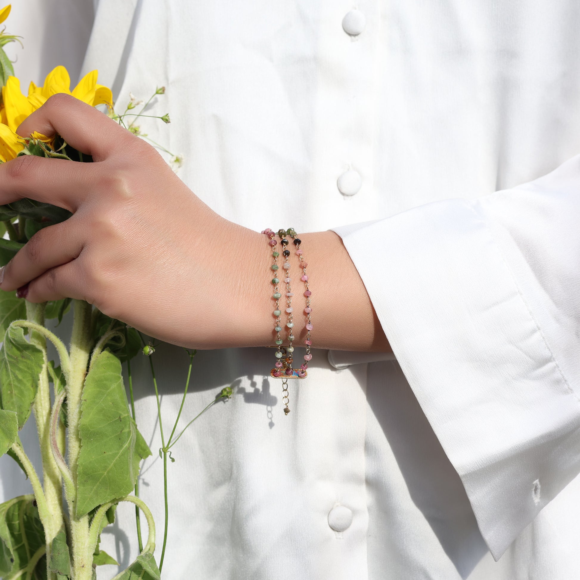 Multi-Tourmaline Double-Strand Bracelet for Women