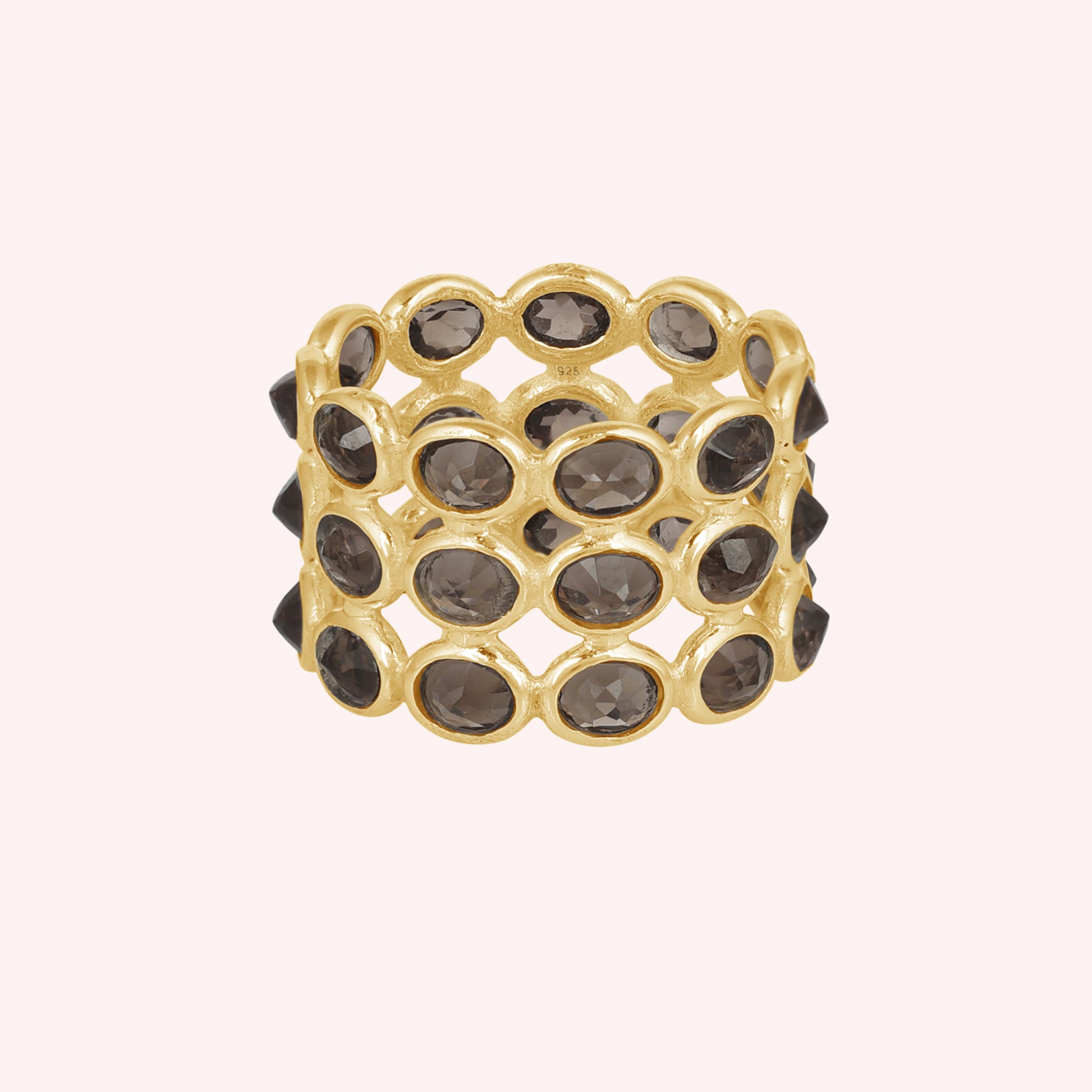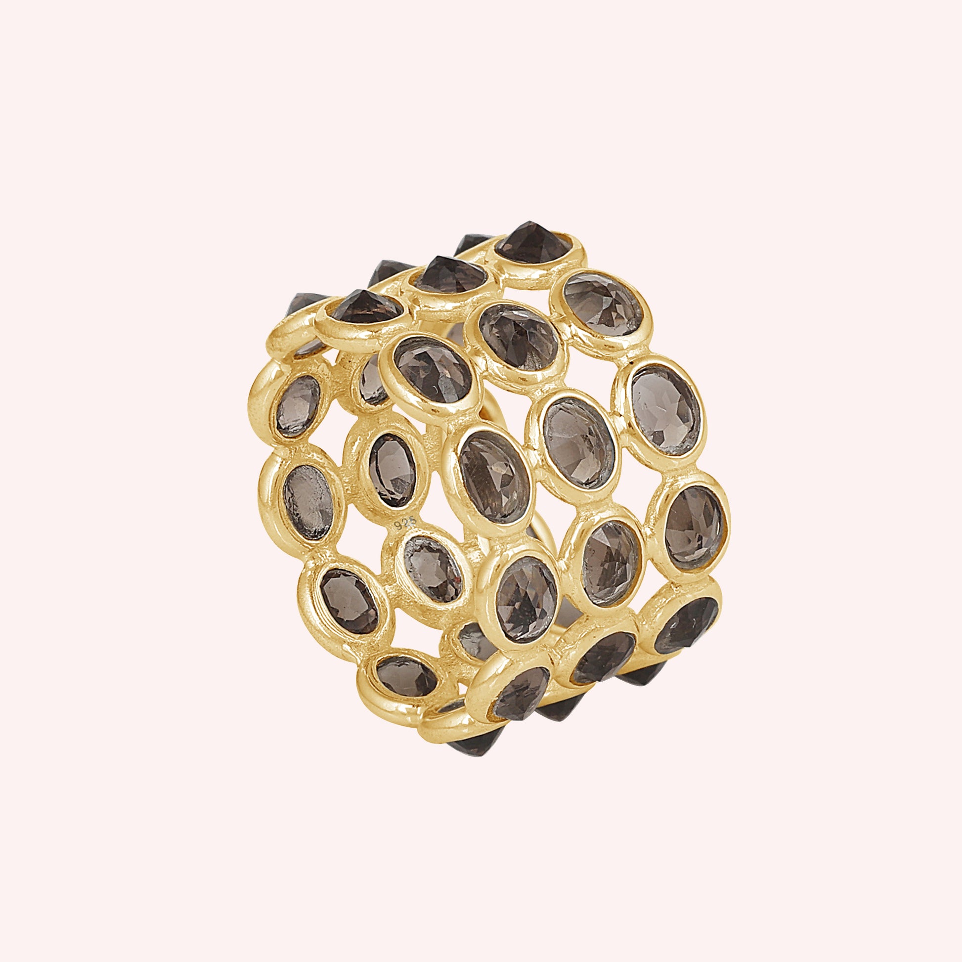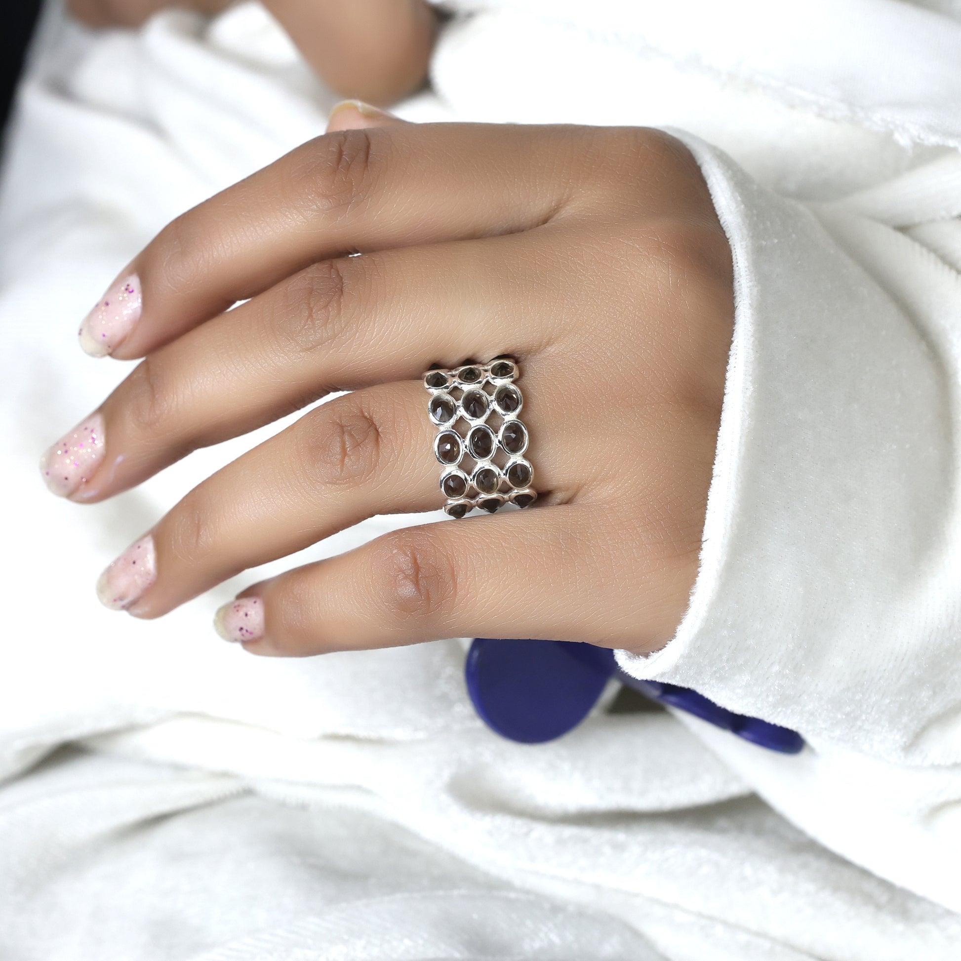Natural Smoky Quartz Full Eternity Triple Band Ring
