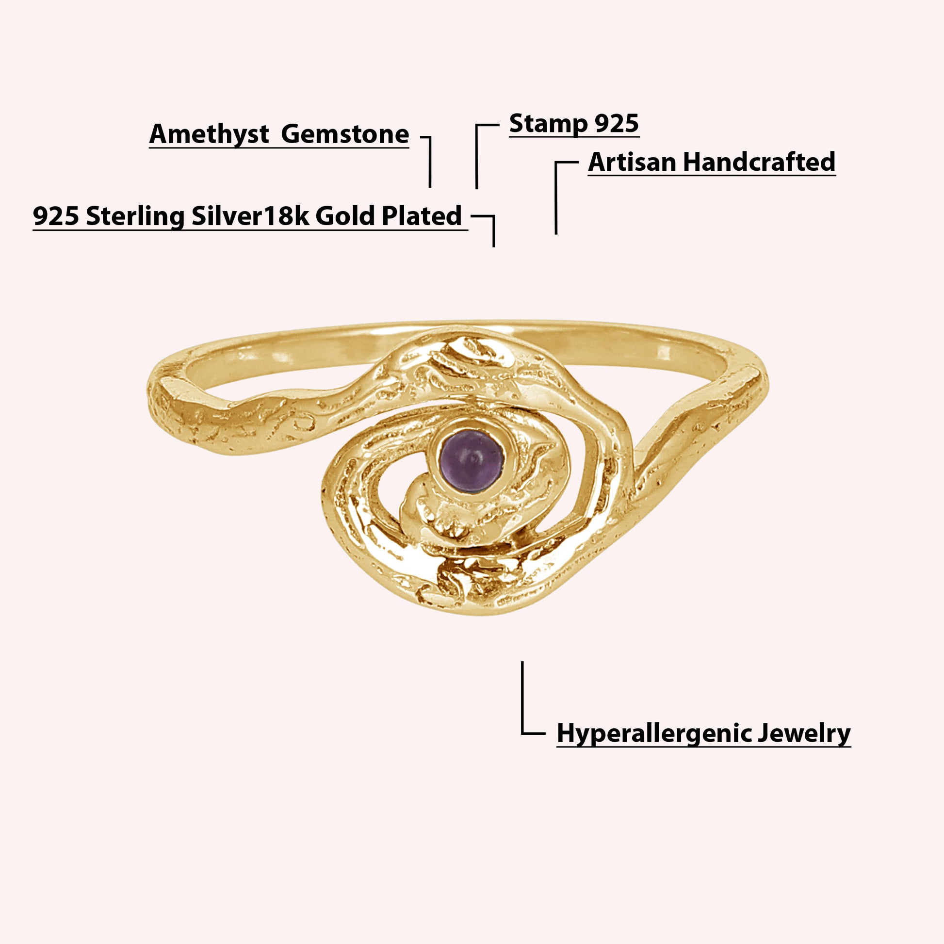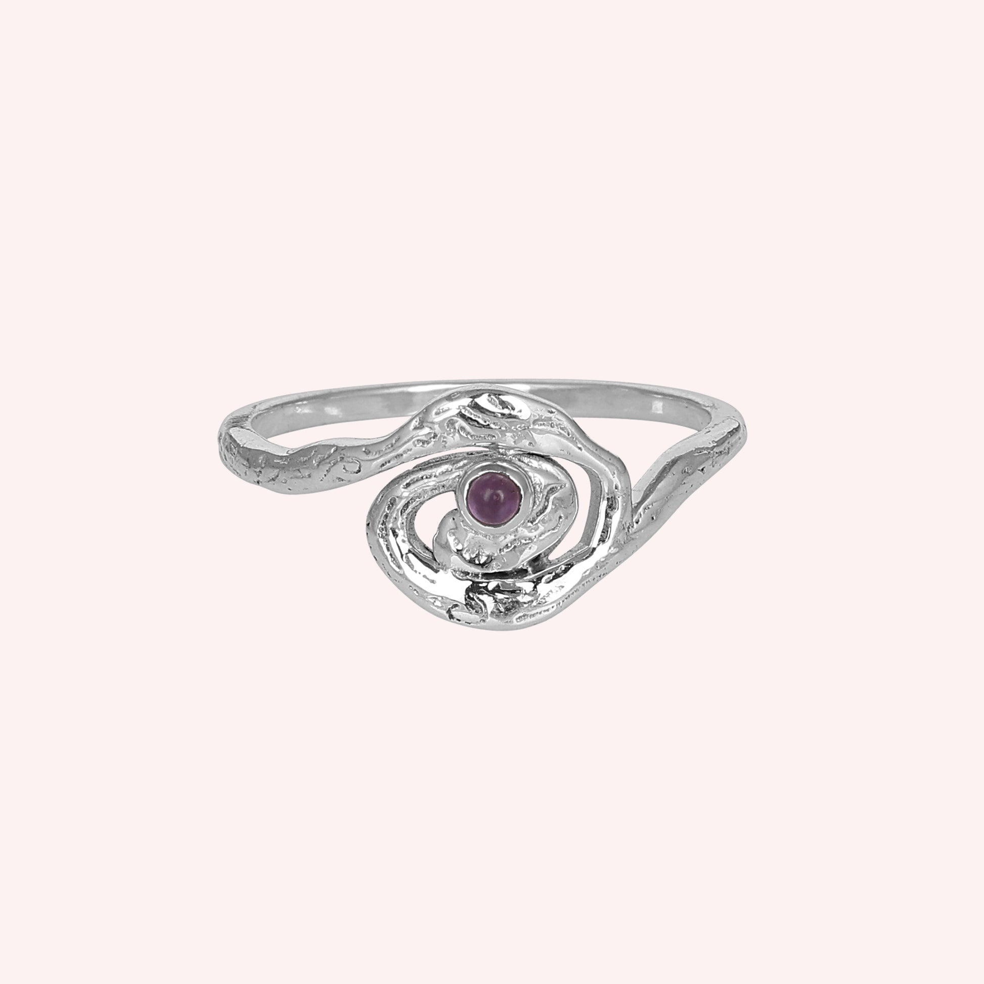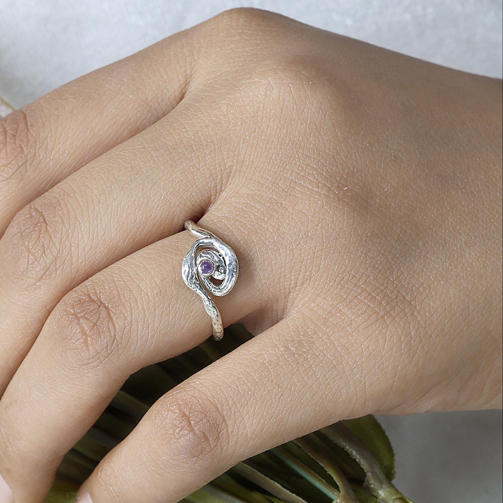 Dainty Sterling Silver Amethyst Wavy Ring Jewelry for Women