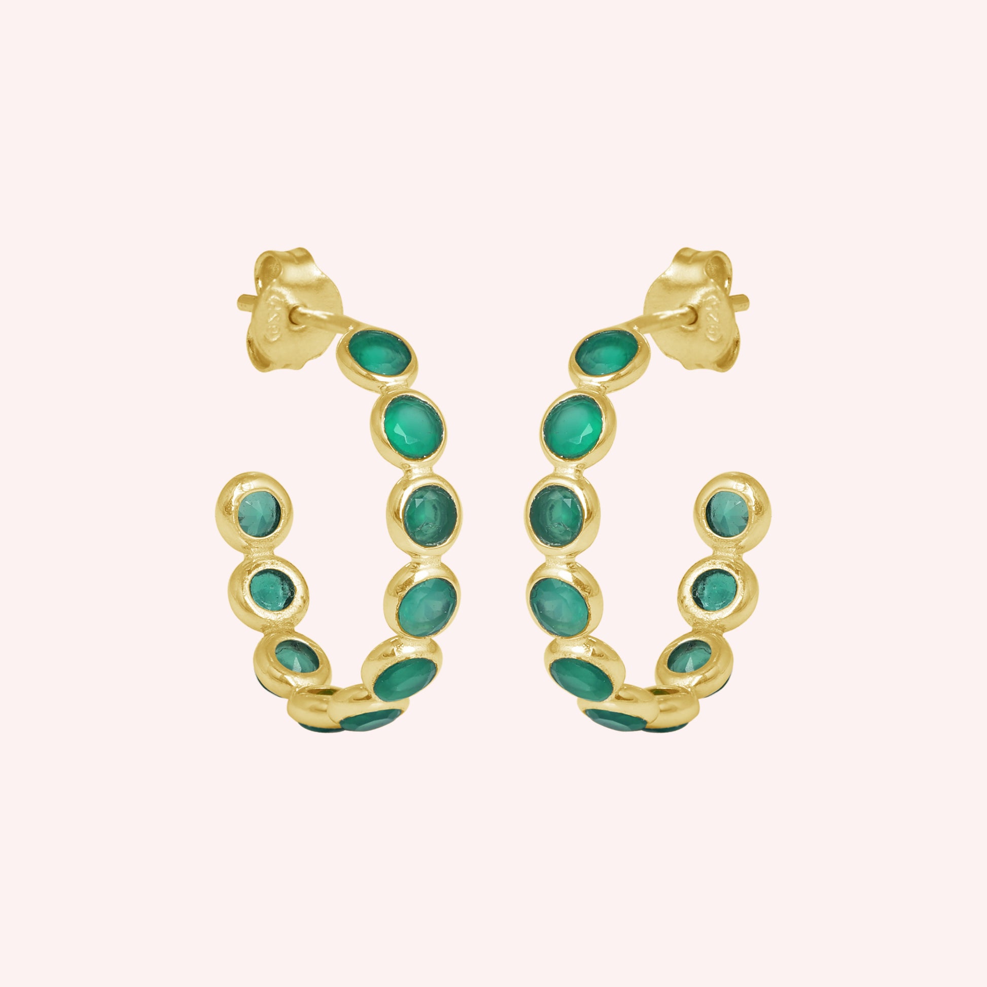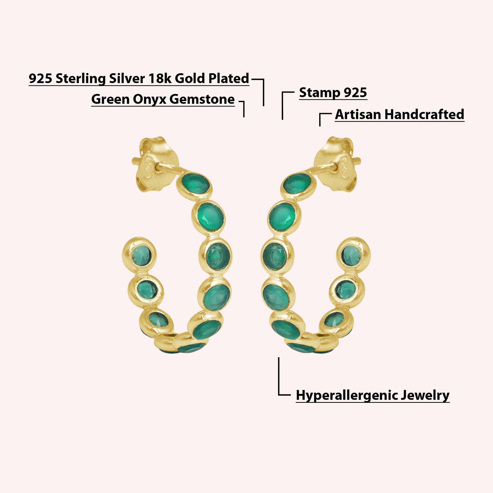 These sterling silver hoops feature vibrant green onyx stones in a sleek bezel setting. Lightweight and stylish, they add a fresh pop of color to any outfit—perfect for everyday or special occasions.