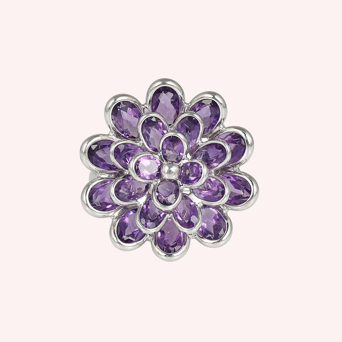 Add elegance with this amethyst flower ring in 925 silver. A central round gem and...