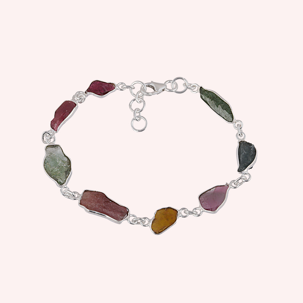 925 Sterling Silver Multi Tourmaline Bracelet Jewelry for Women