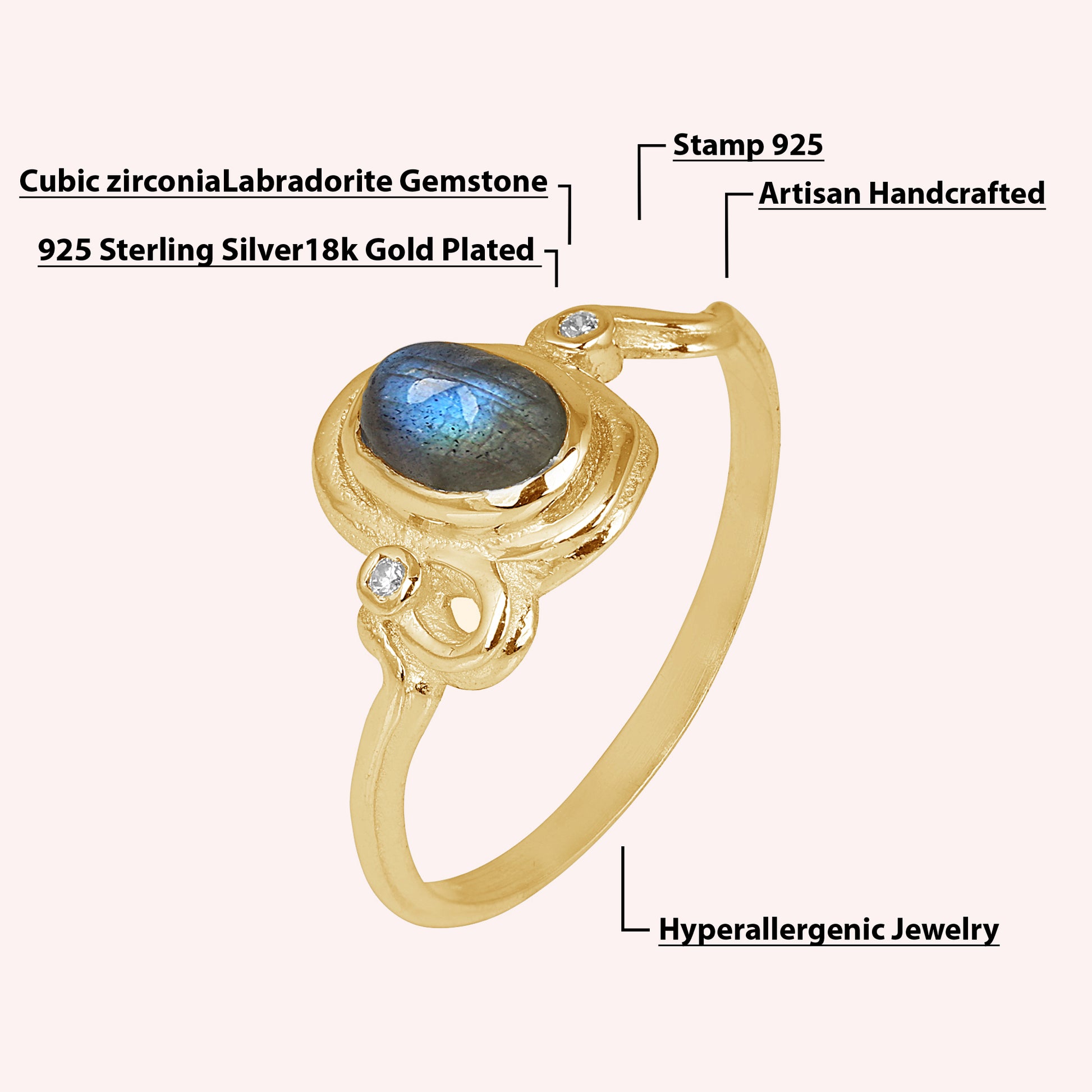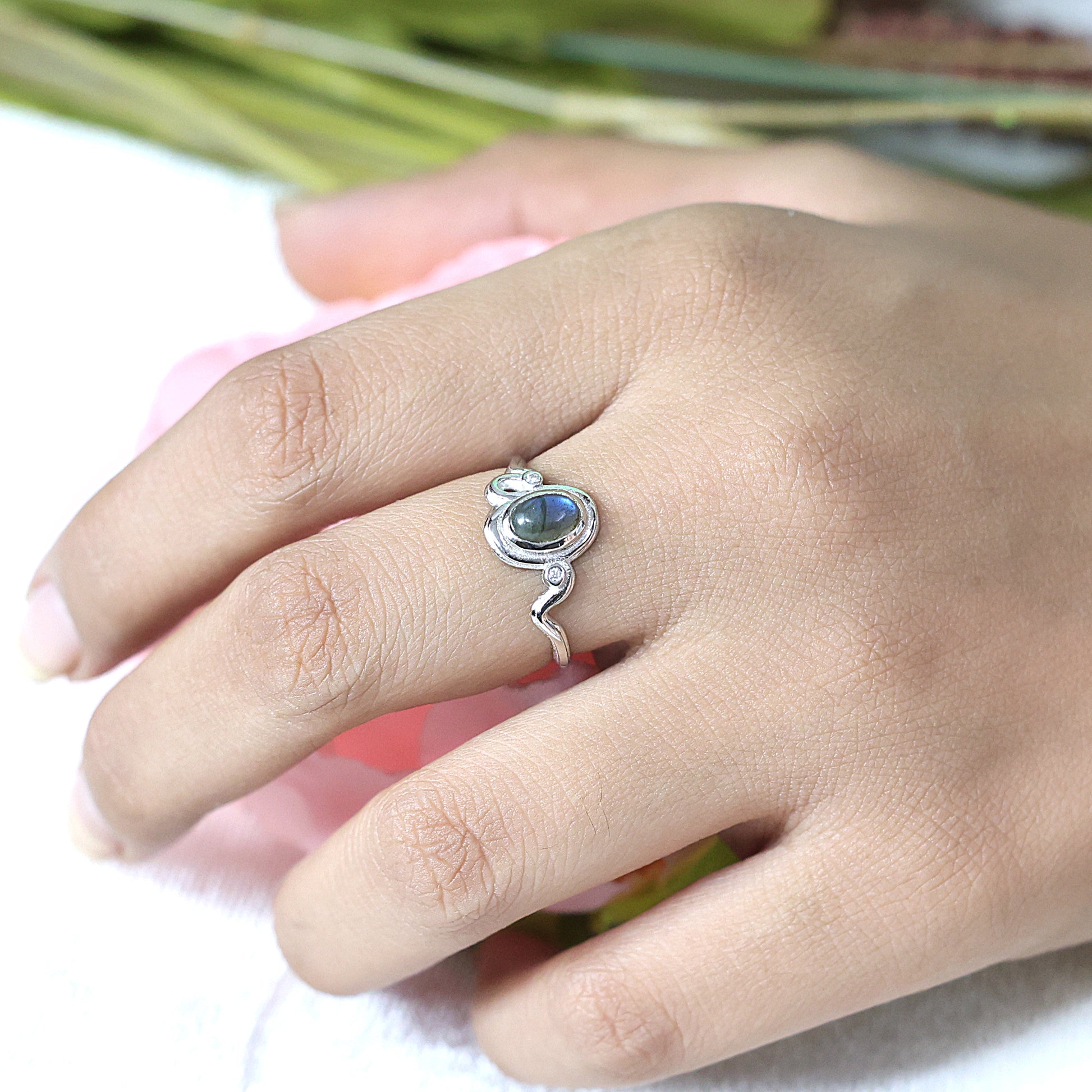 925 Sterling Silver Labradorite Wavy Ring Jewelry for Women