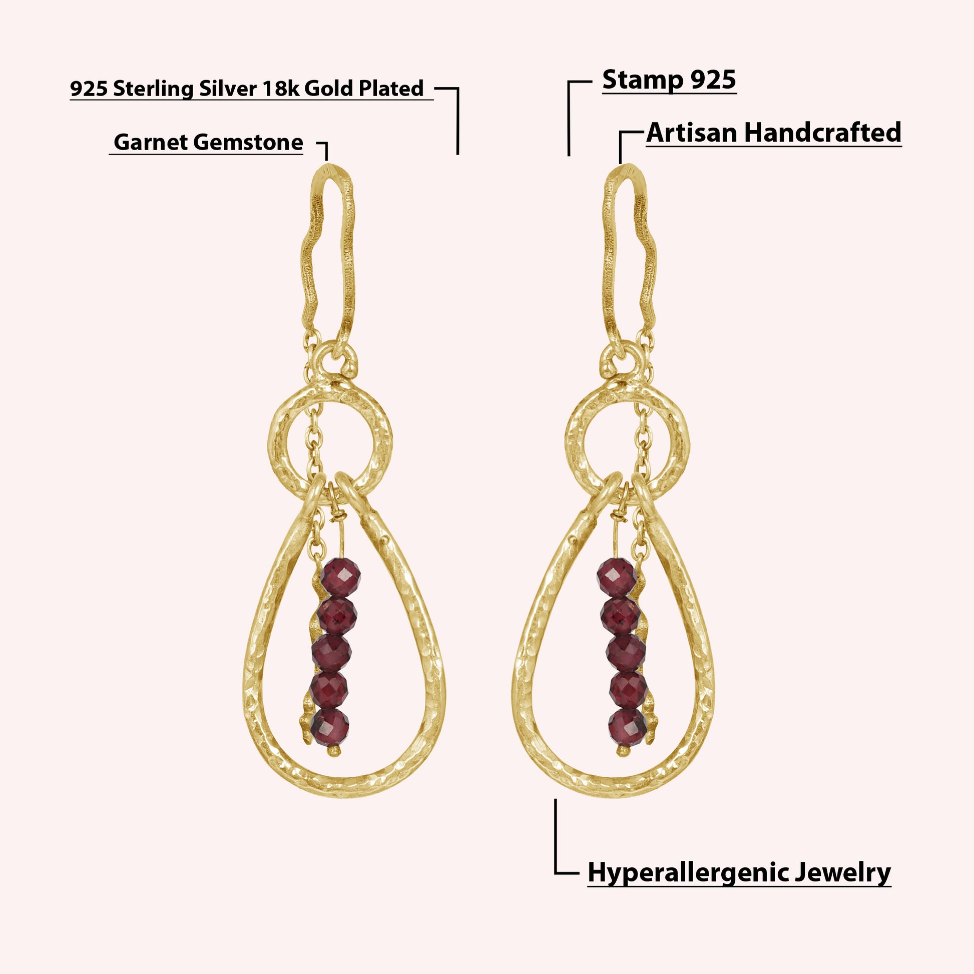 Teardrop Garnet Bead Dangle Earrings Jewelry for Women