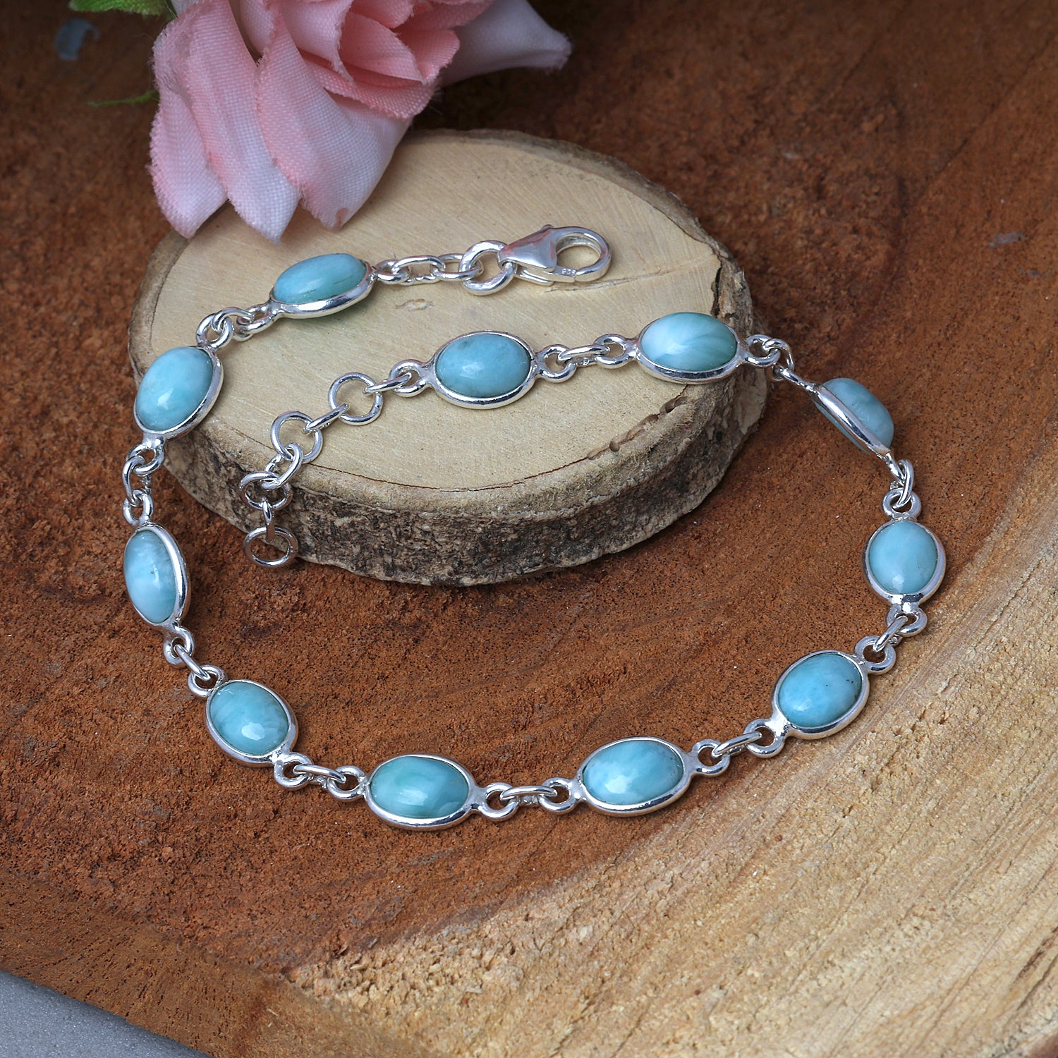 925 Sterling Silver Blue Ocean Larimar Bracelet Jewelry for Women