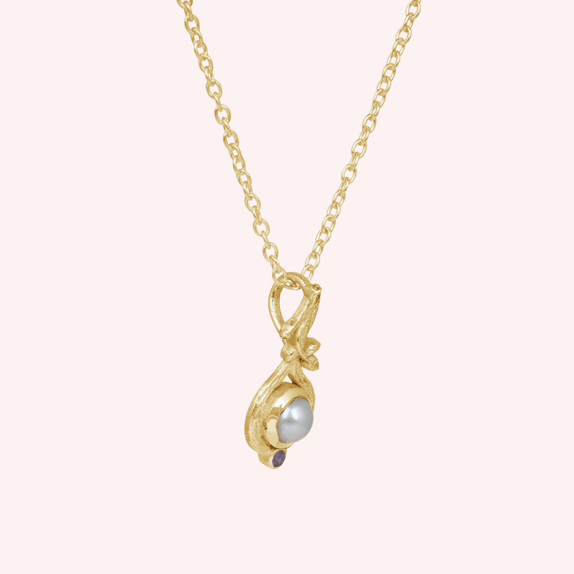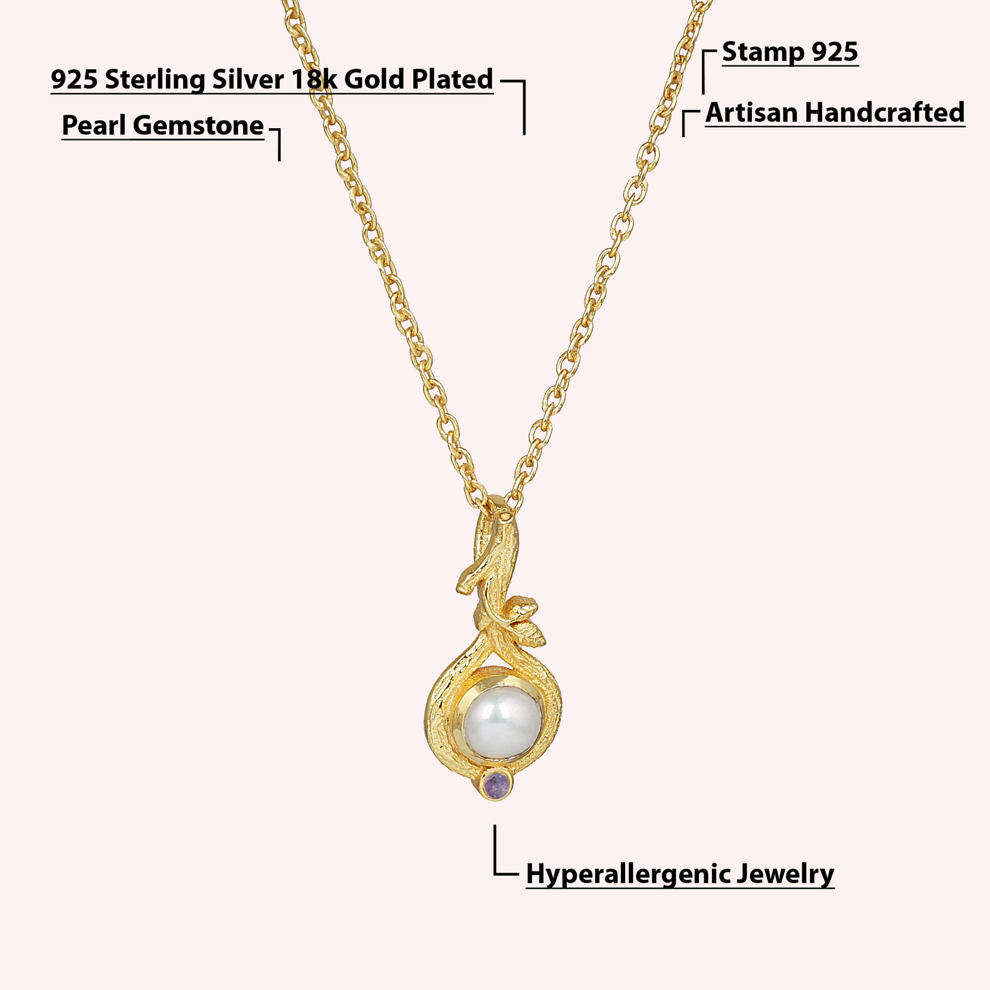 925 Sterling Silver Pearl & Amethyst Pendant Necklace for Her