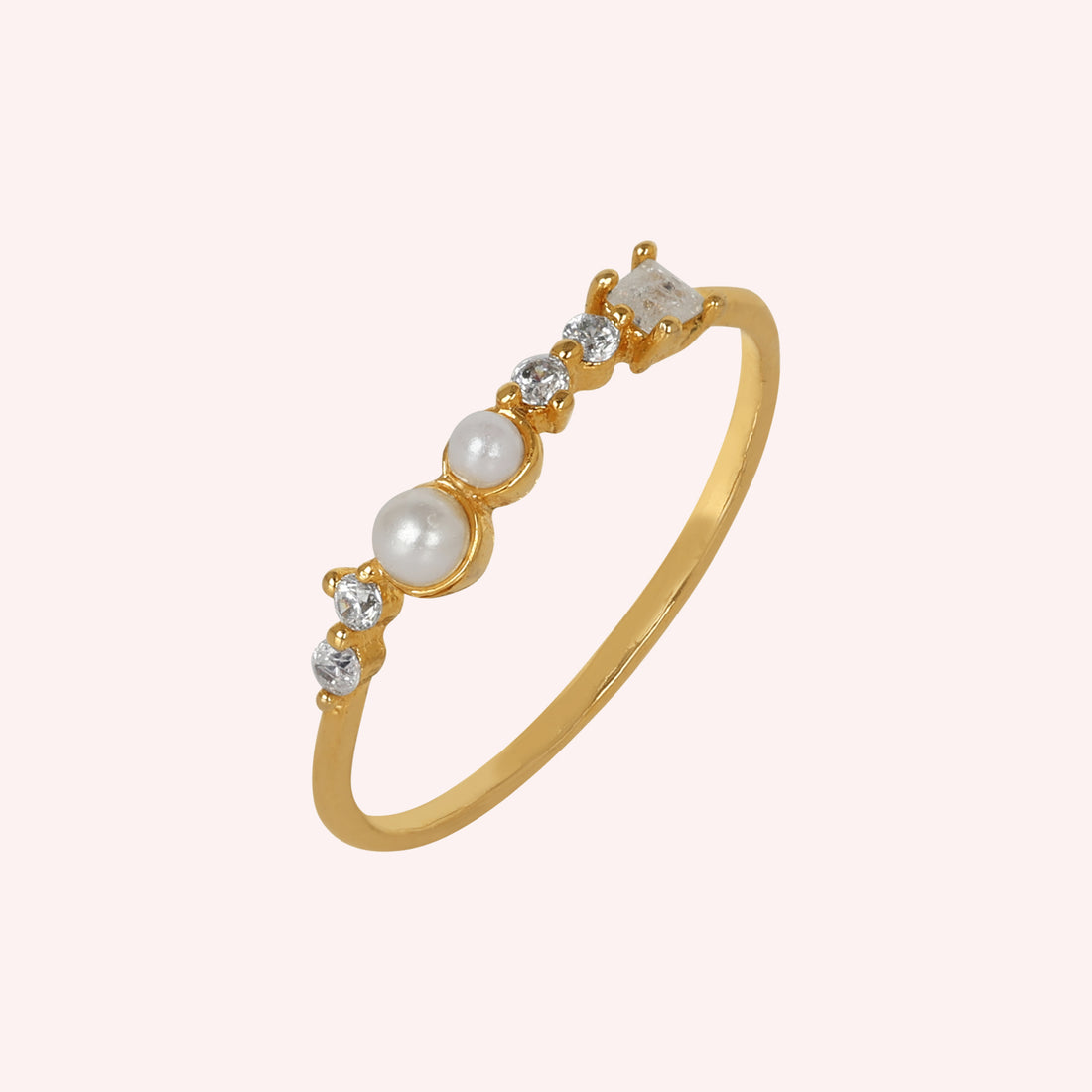 925 Sterling Silver Pearl, White Topaz & Moonstone Minimal Ring