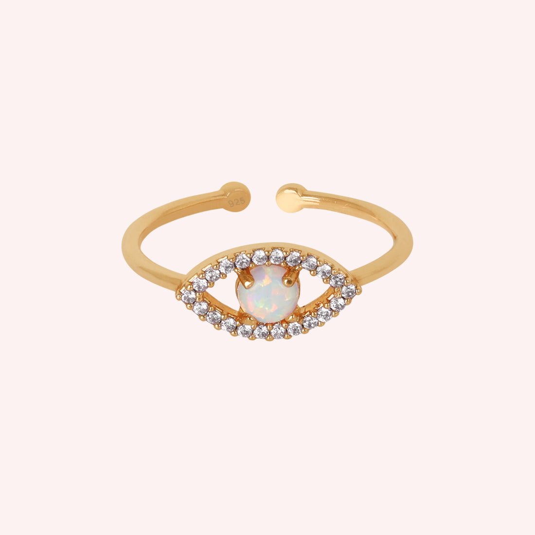 925 Sterling Silver Evil Eye Opal & White Topaz Ring for Women