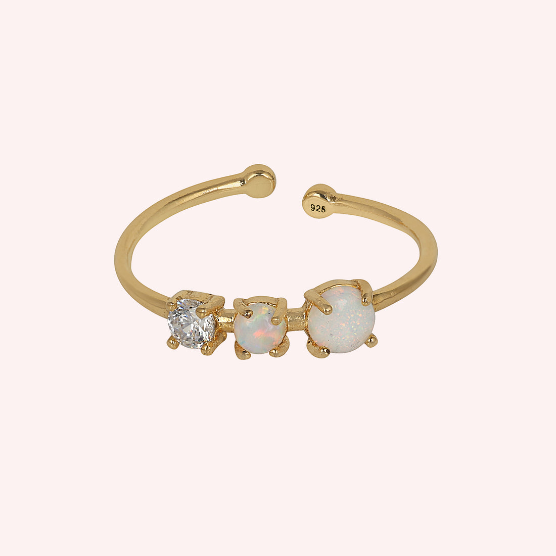 925 Sterling Silver Opal & White Topaz Adjustable Dainty Ring