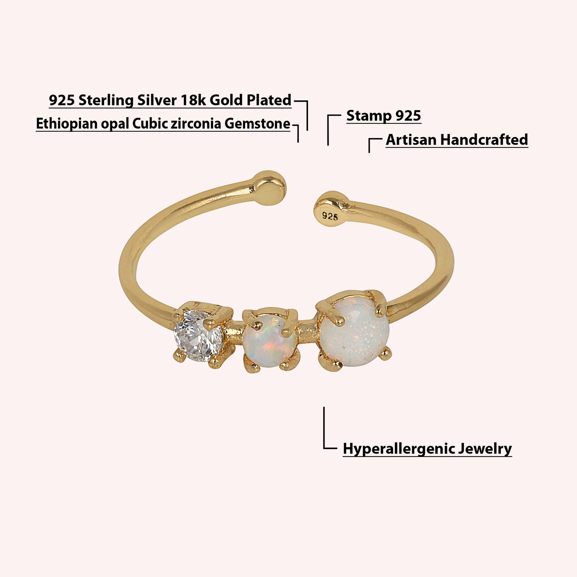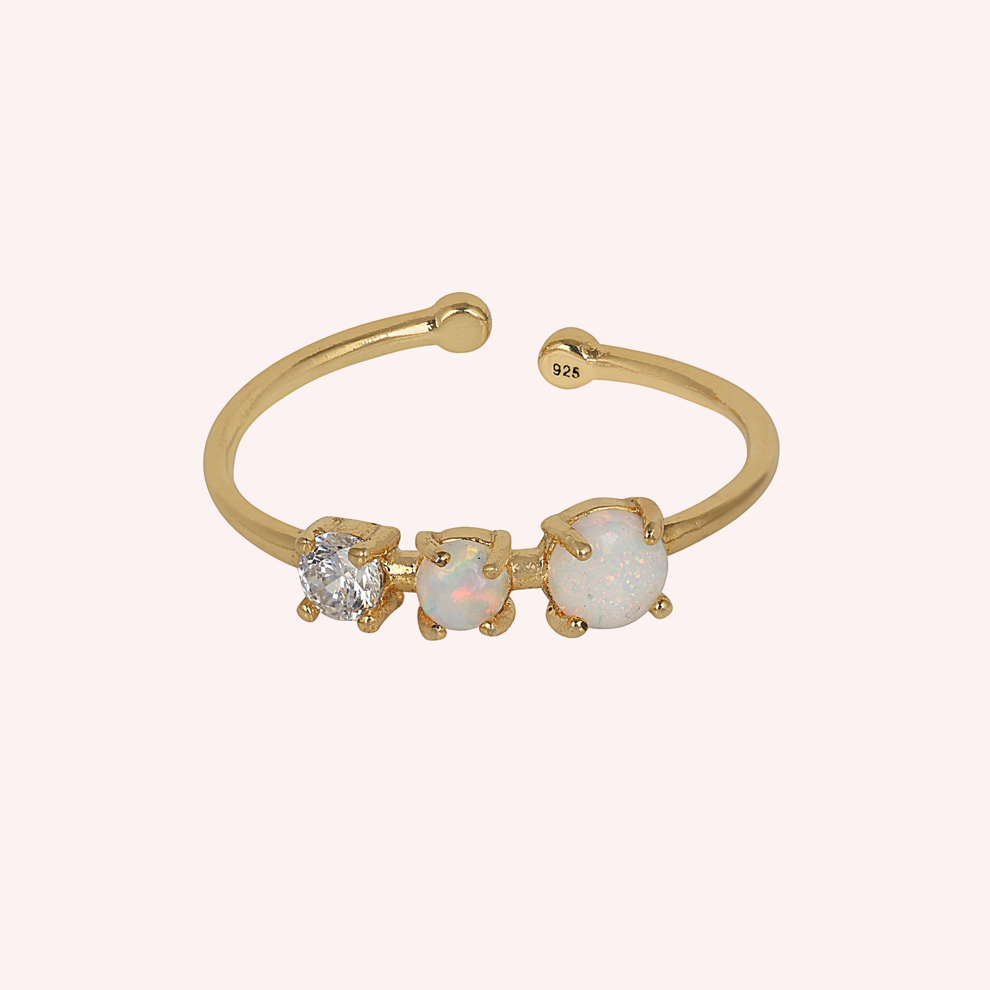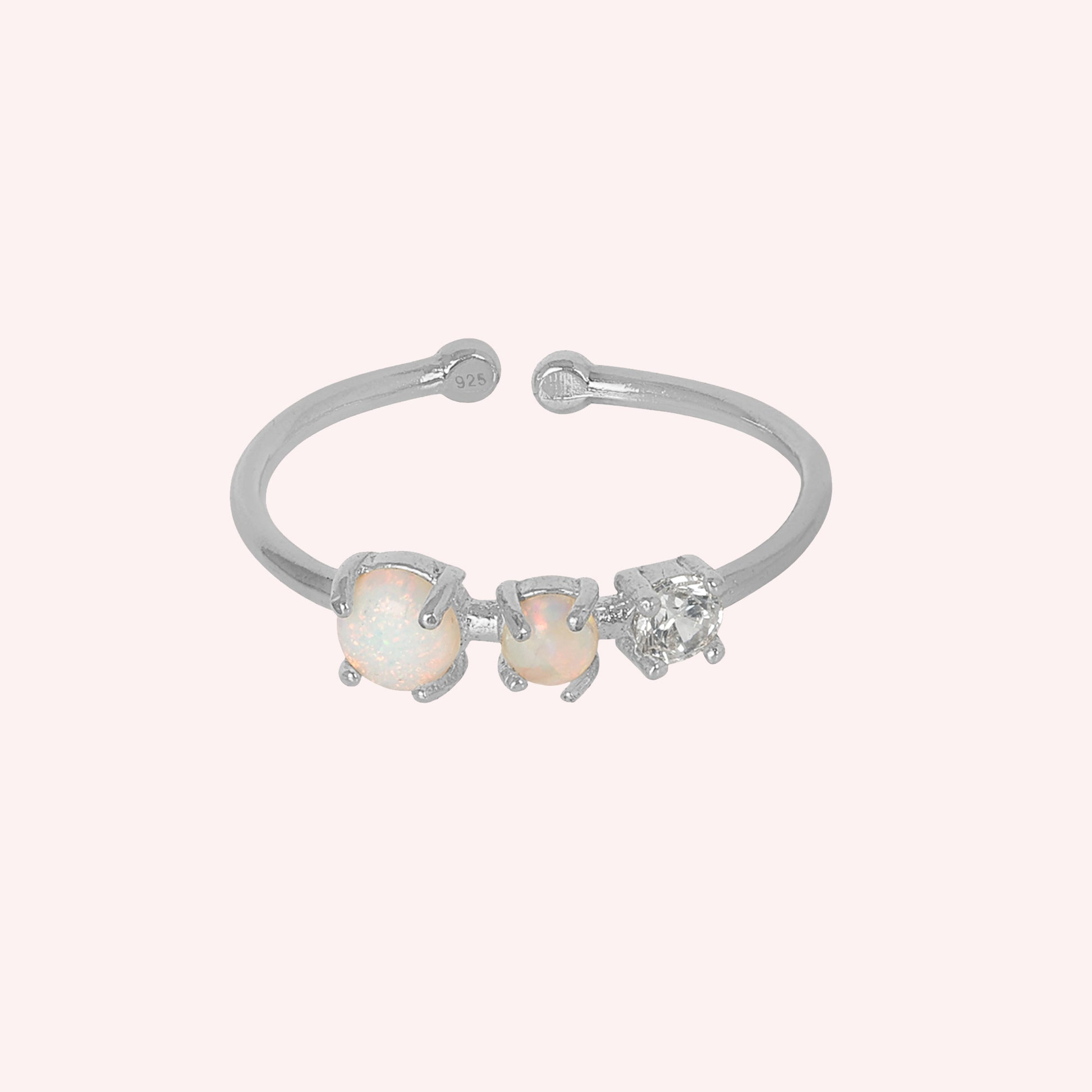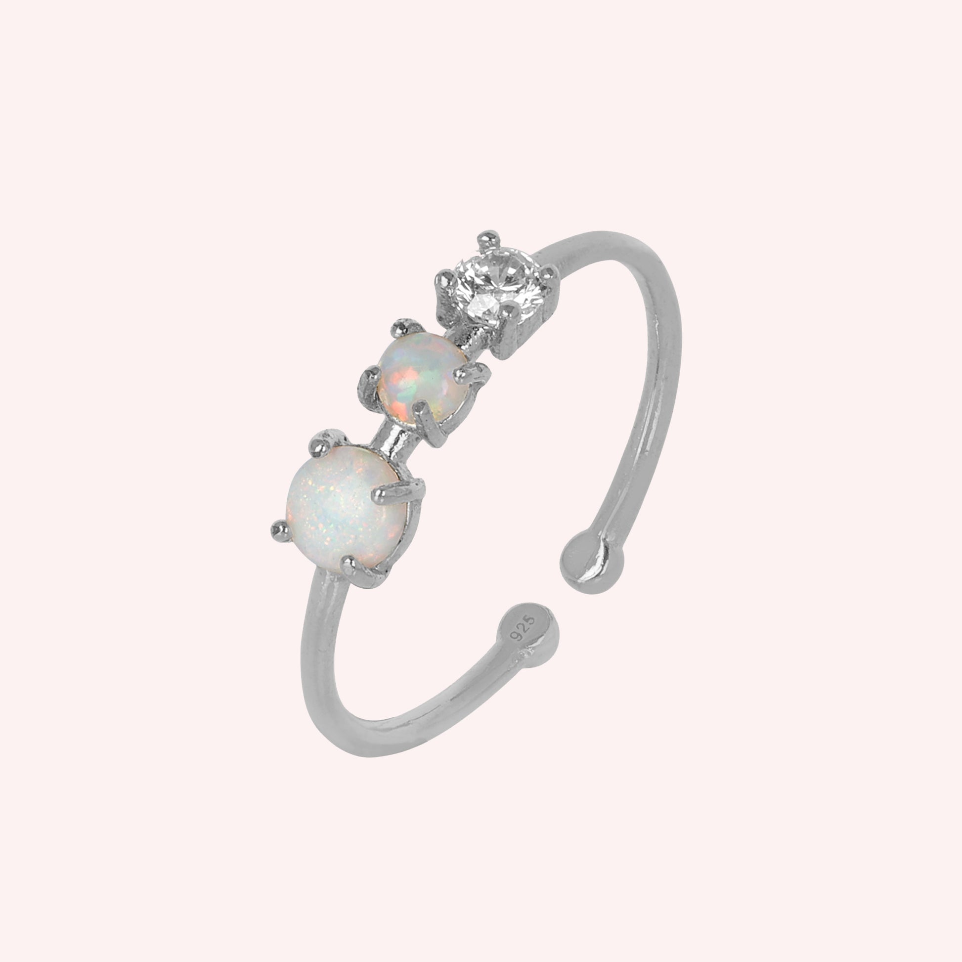 925 Sterling Silver Adjustable Opal & White Topaz Ring for Women
