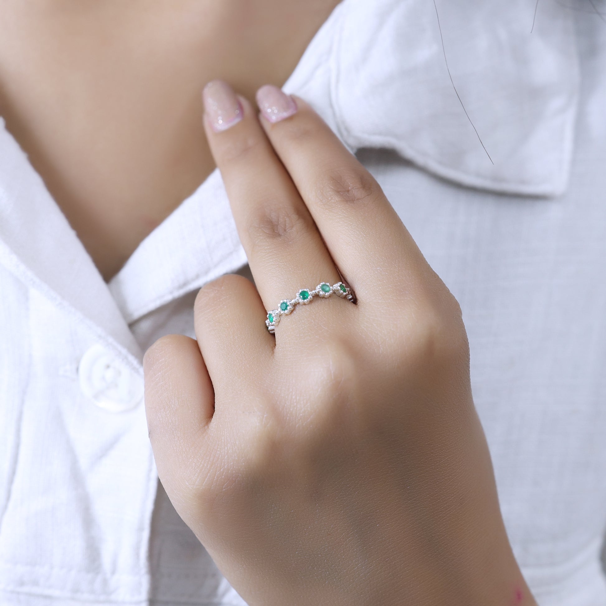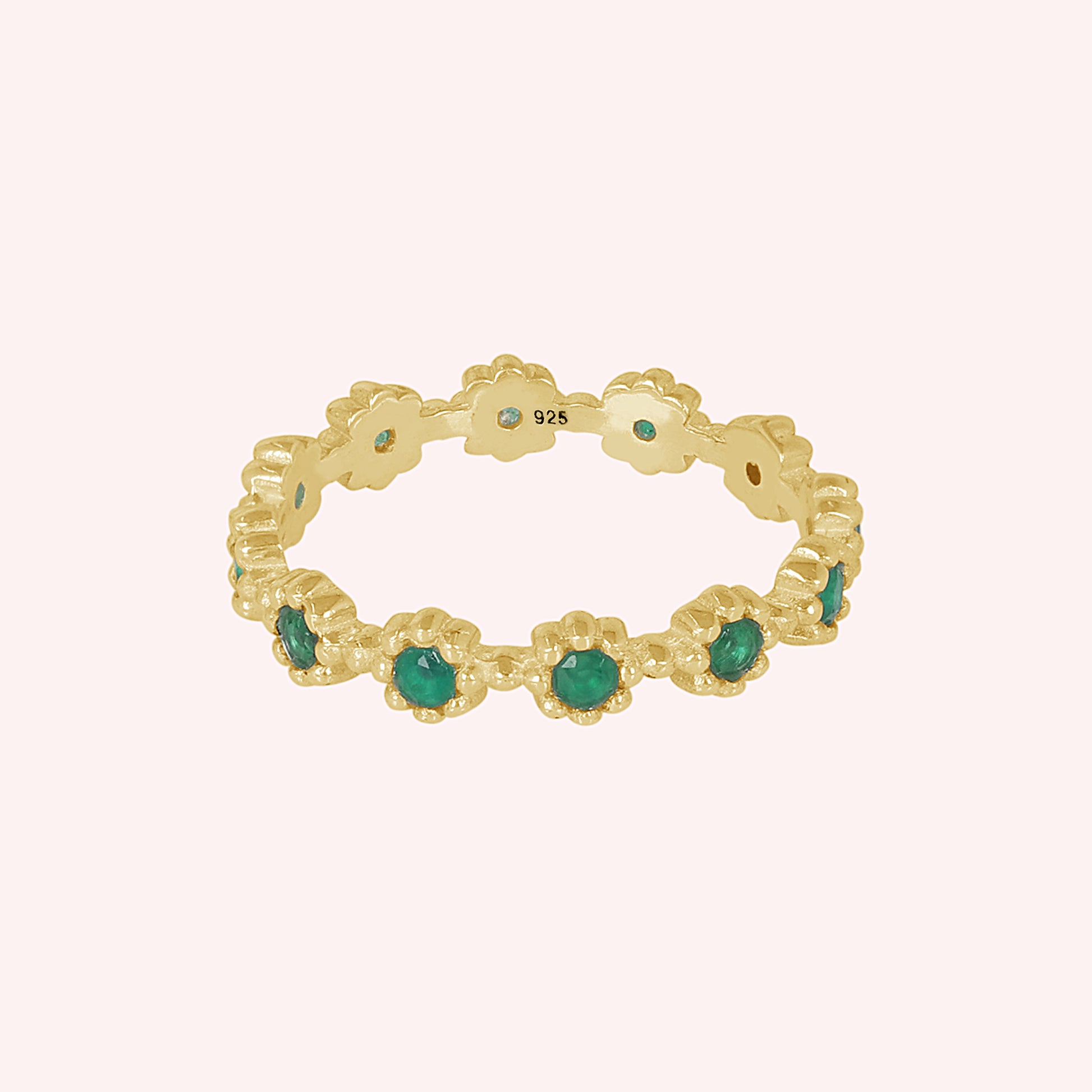 925 Sterling Silver Green Flower Full Eternity Ring for Women