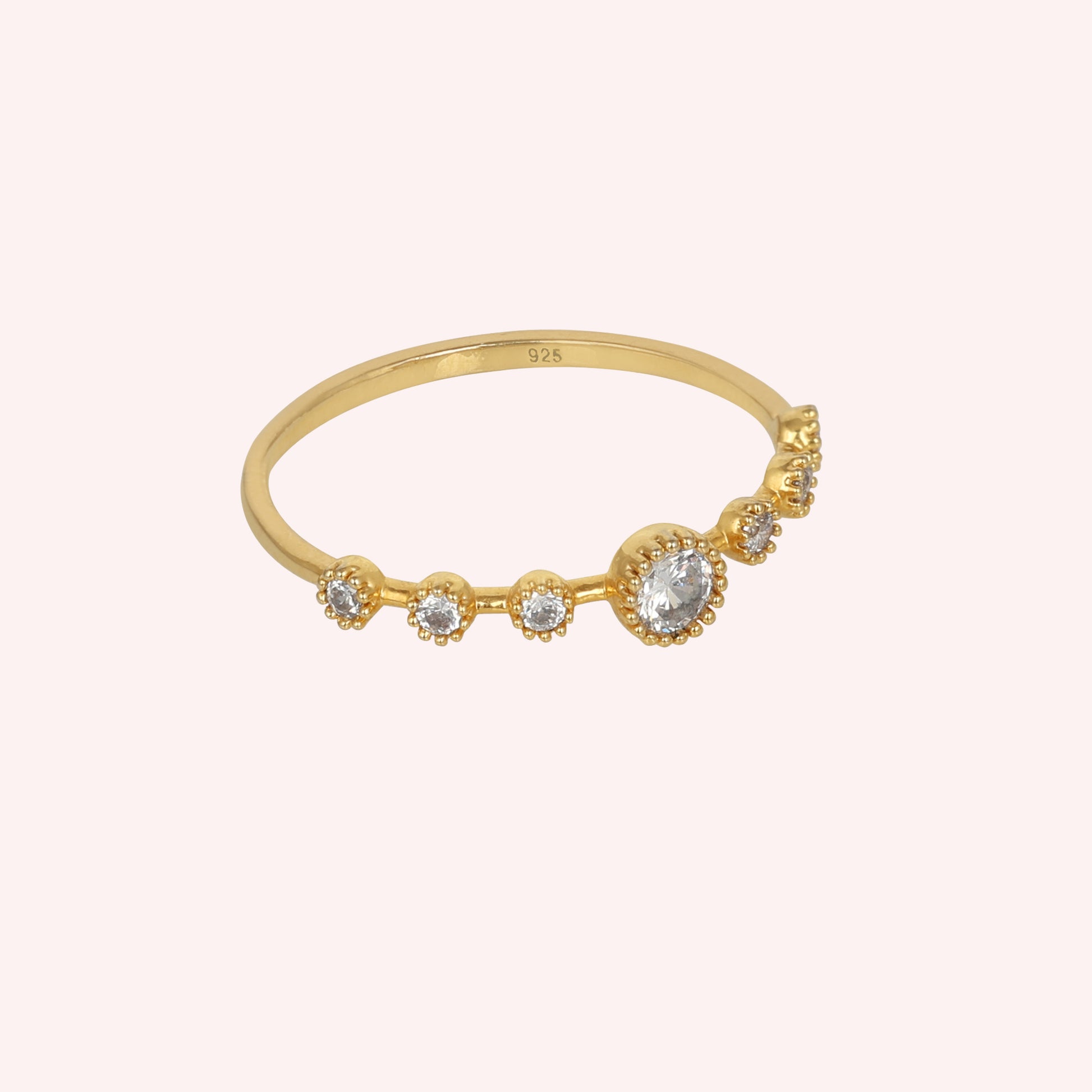 Gorgeous ring! The gold plating is beautiful and the zircon stones are brilliant.