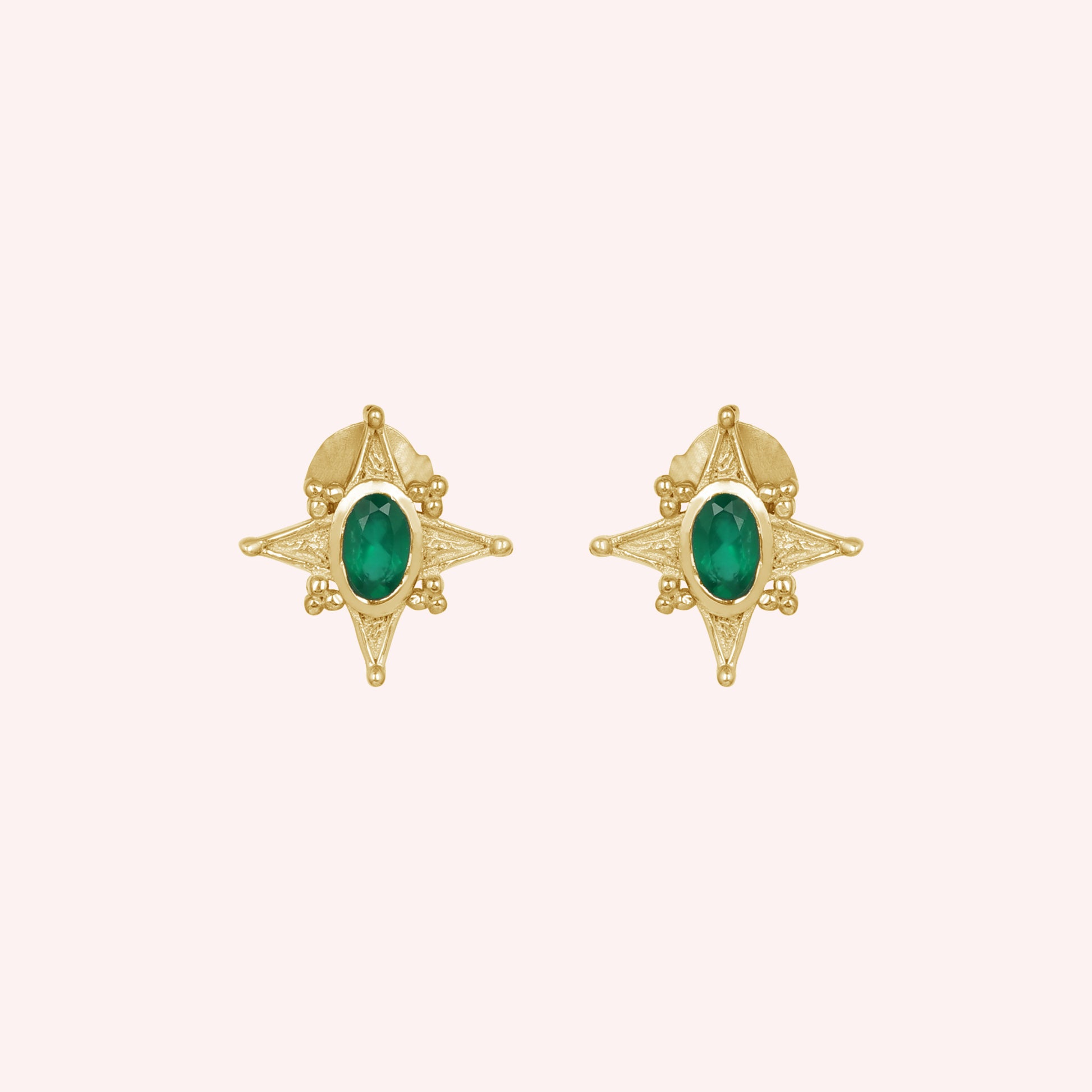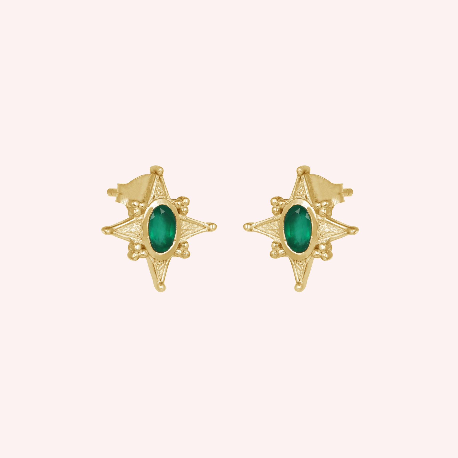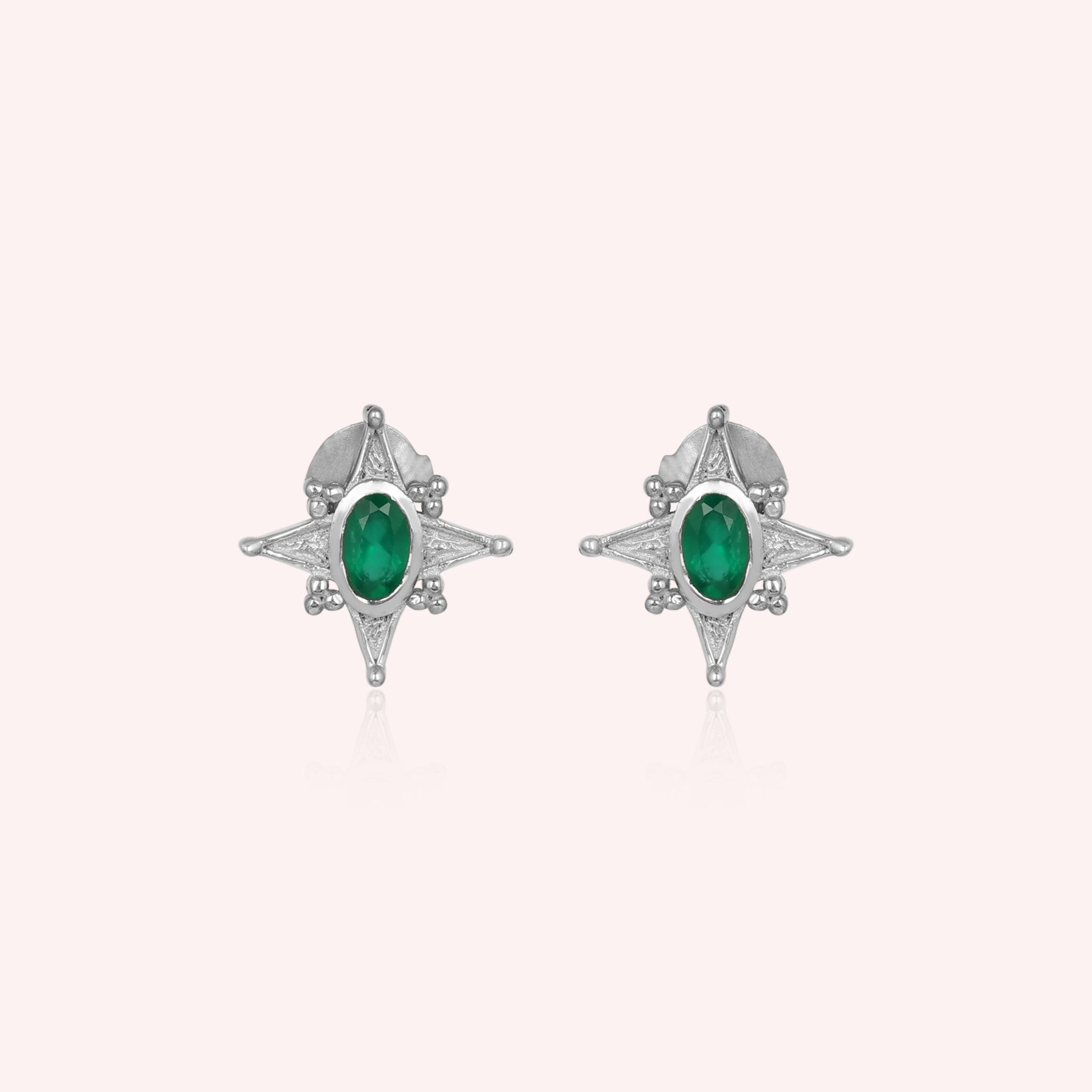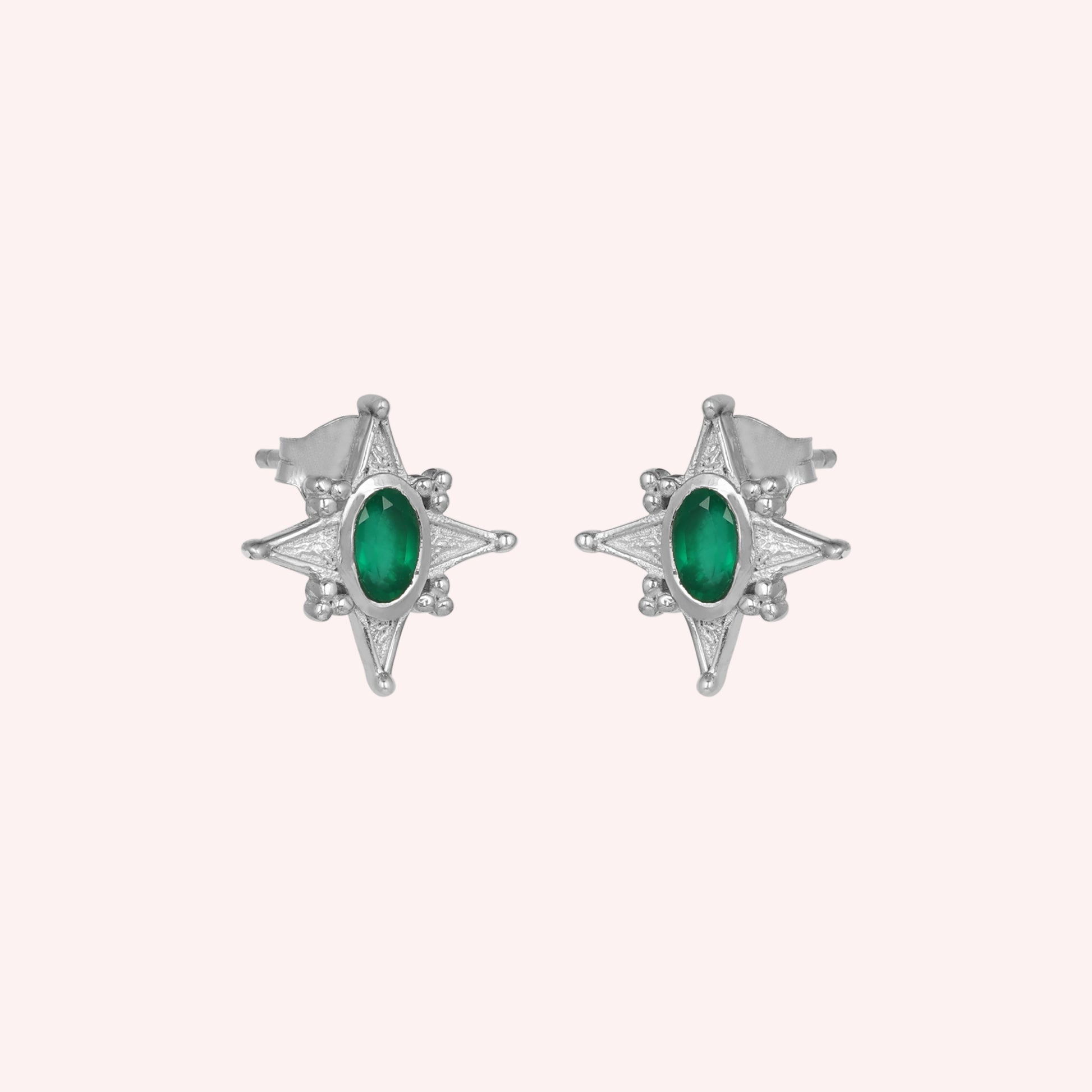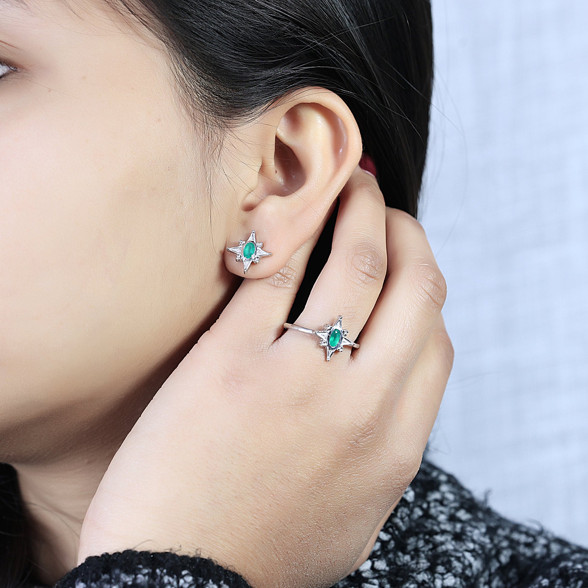 925 Sterling Silver Green Onyx Stardust Stud Earrings