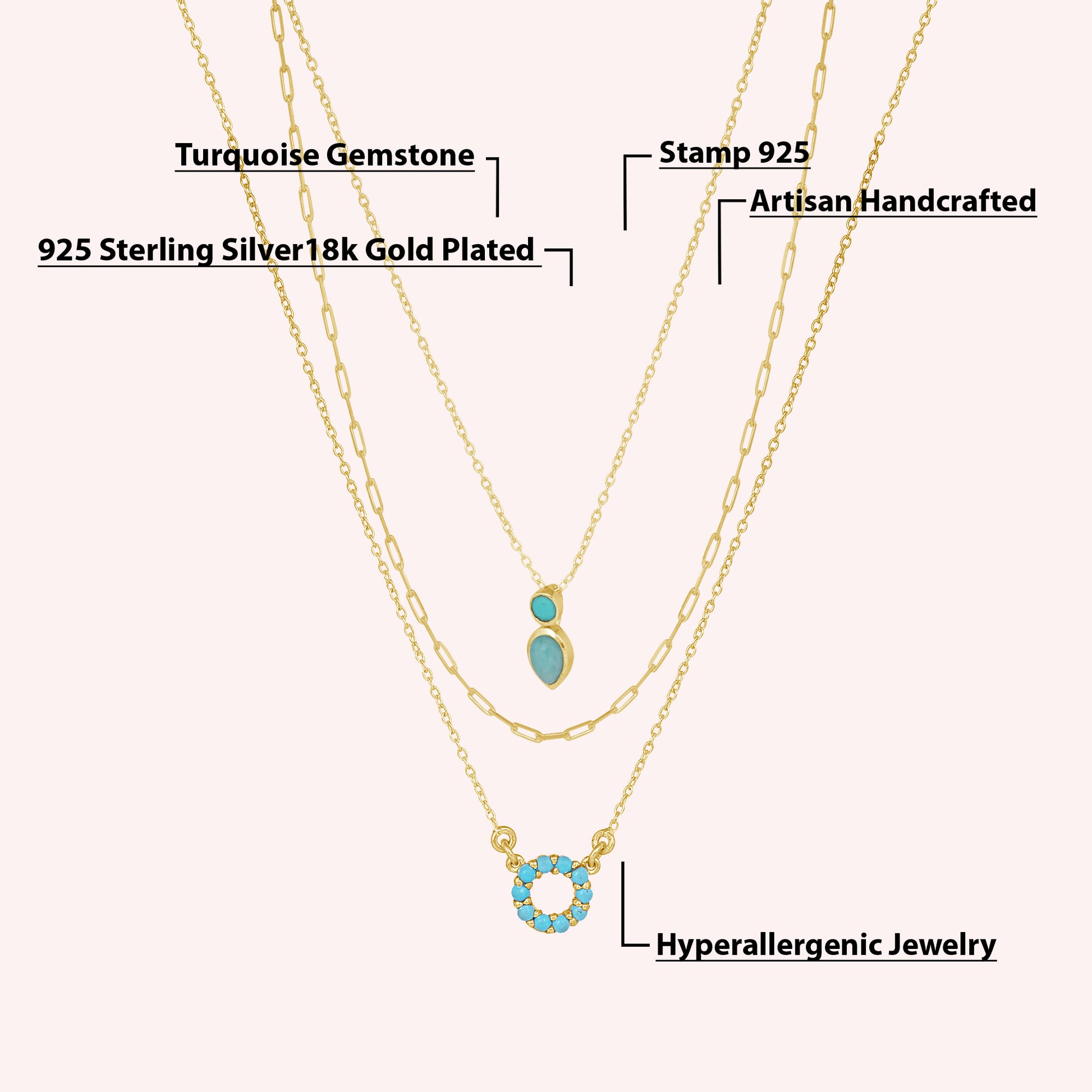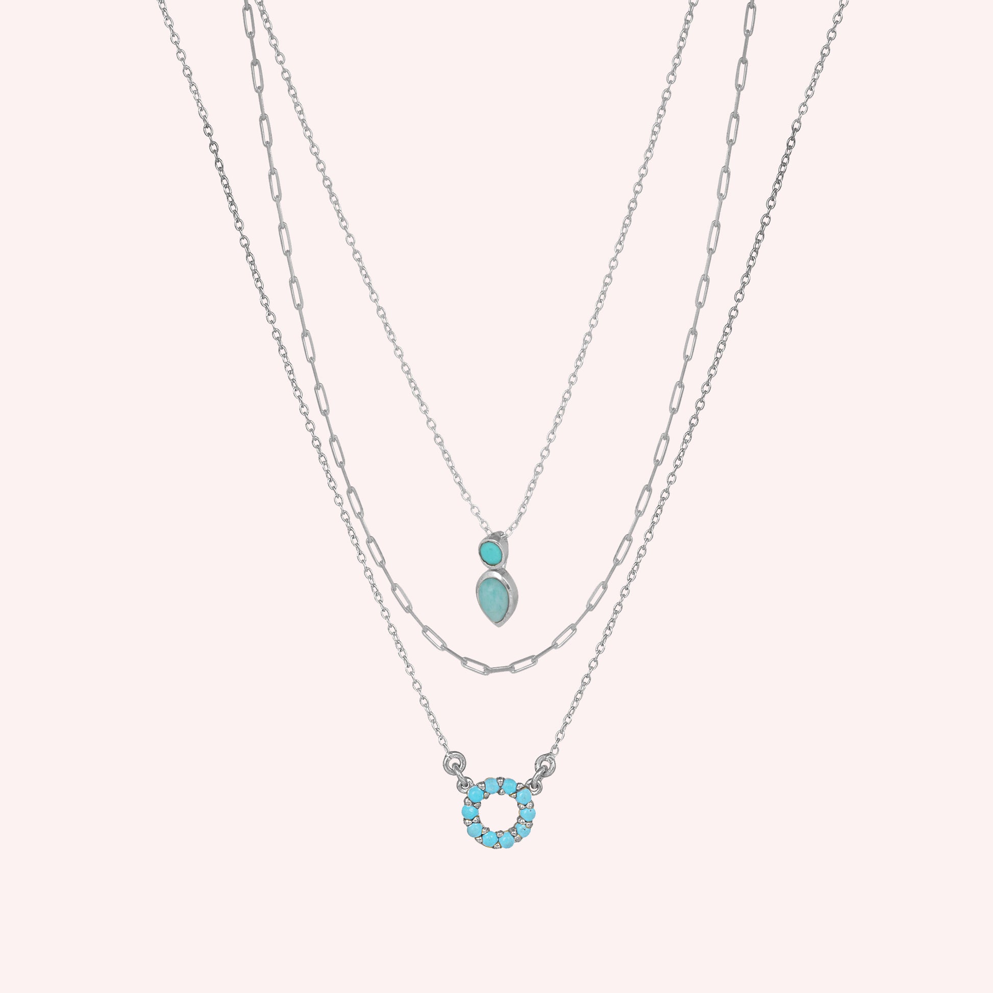 Triple Layered Sterling Silver Necklace with Arizona Turquoise