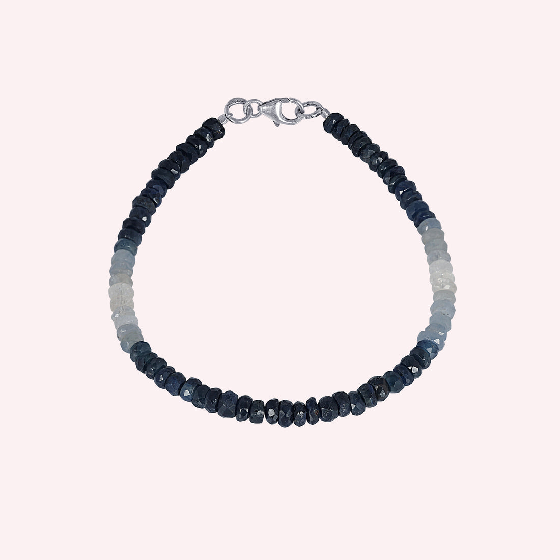 This dainty bracelet features ombre-shaded natural sapphire beads and a sterling silver clasp. A minimalist...