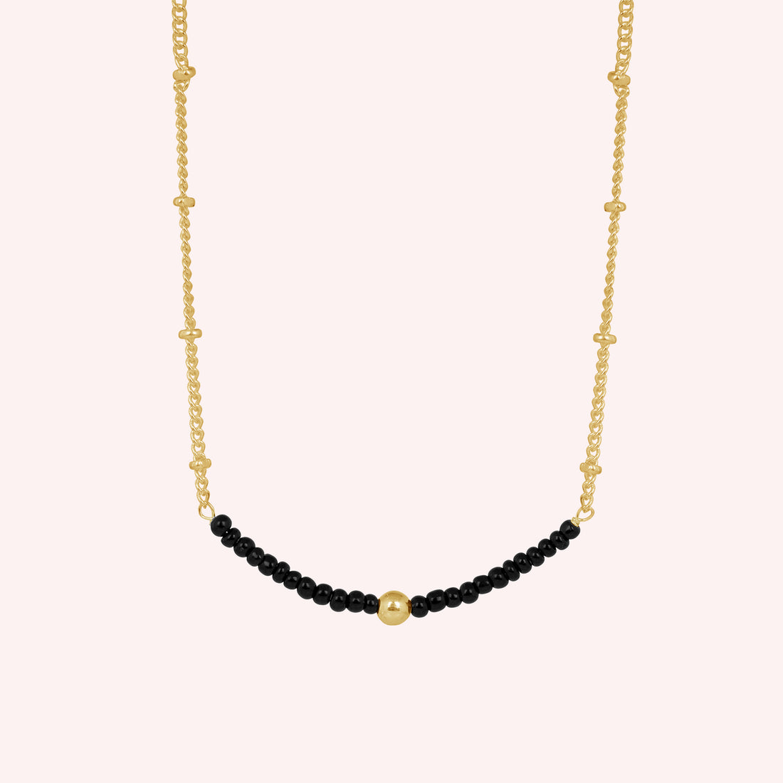 Sterling Silver Minimalist black onyx Beads Necklace Jewelry for Women