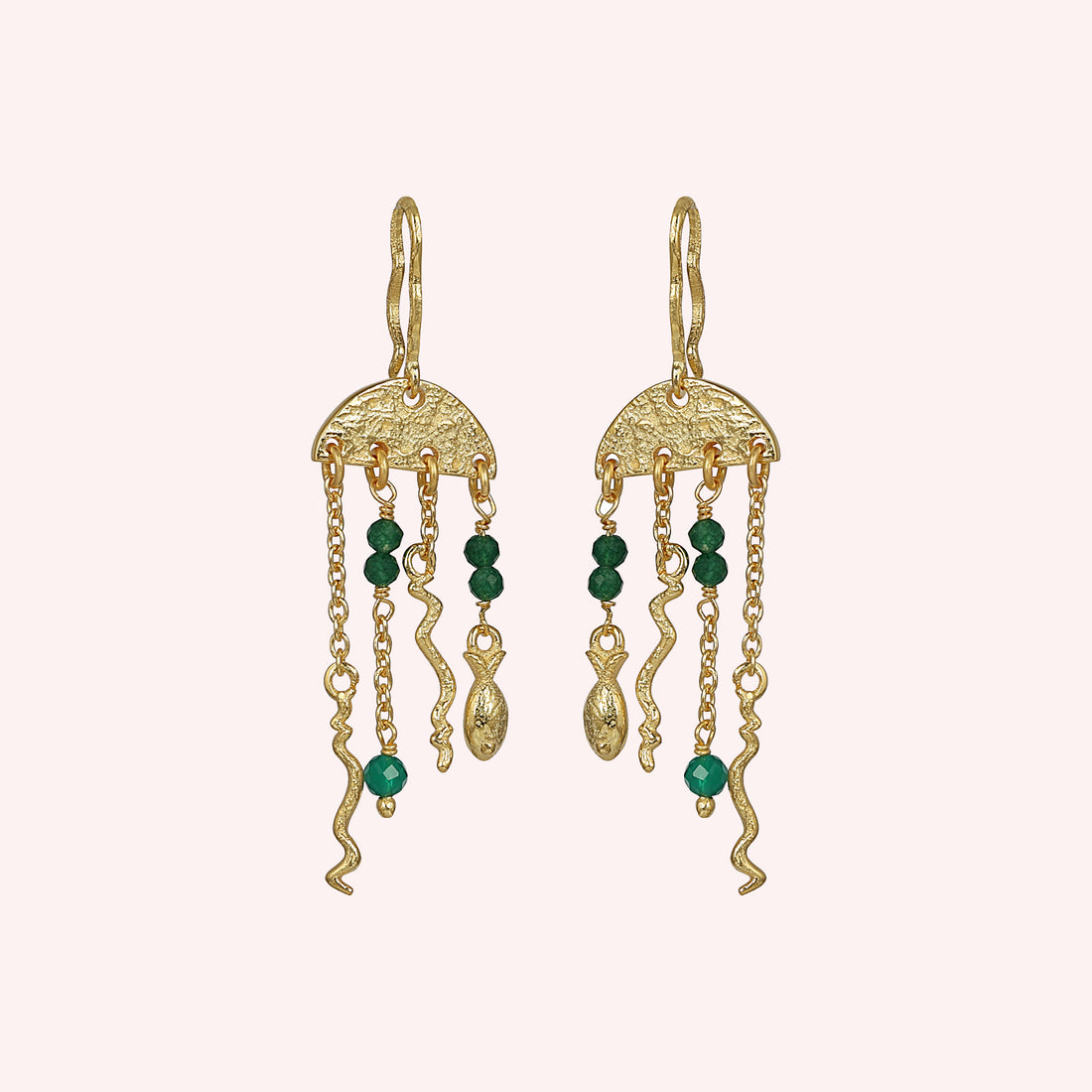 Jellyfish Beads Dangle Green Onyx Earrings Jewelry for Women