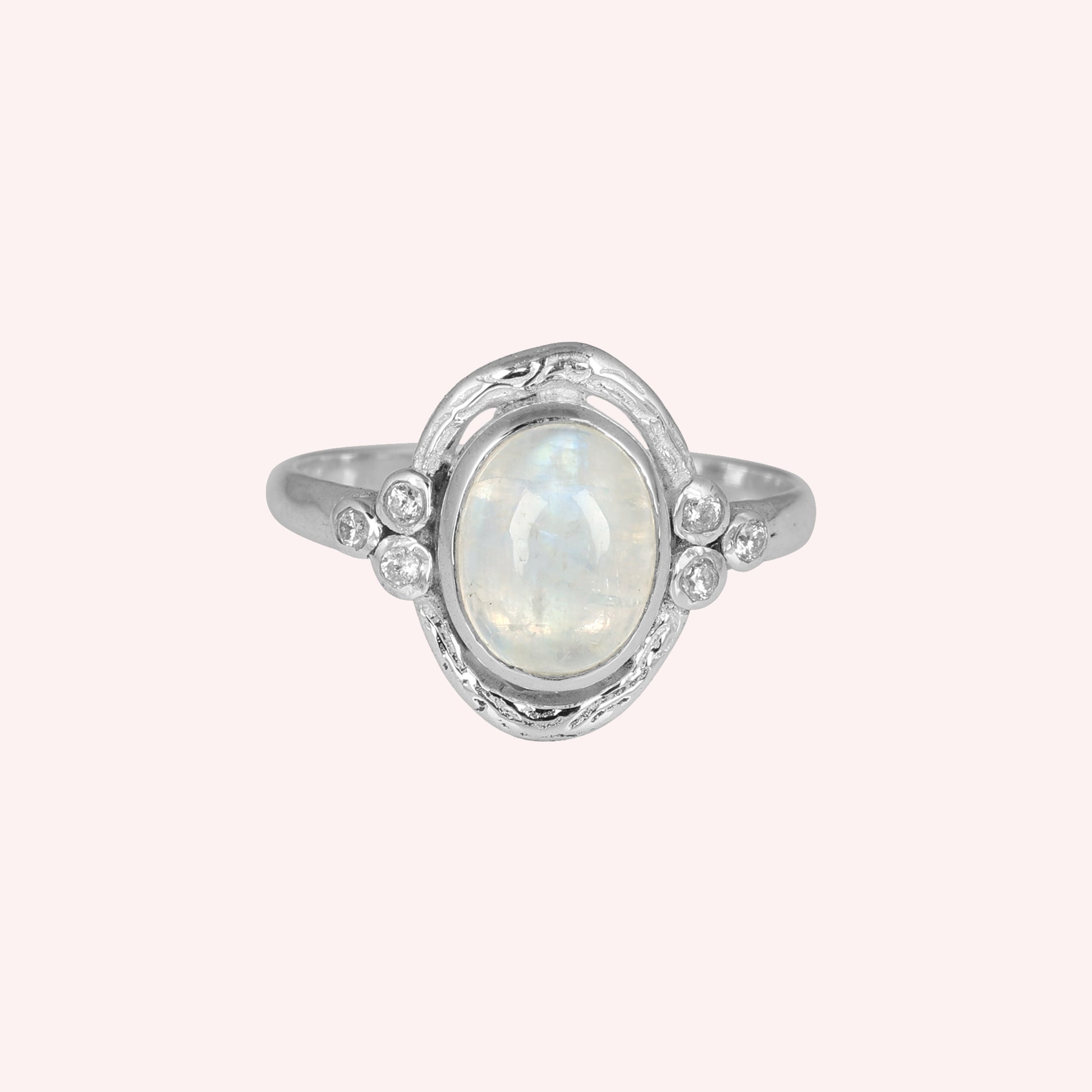 Crystal accents add extra sparkle to the dreamy moonstone.