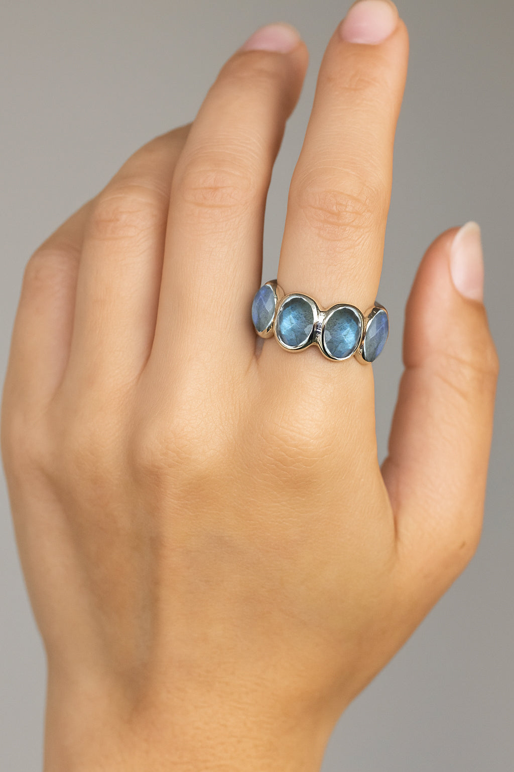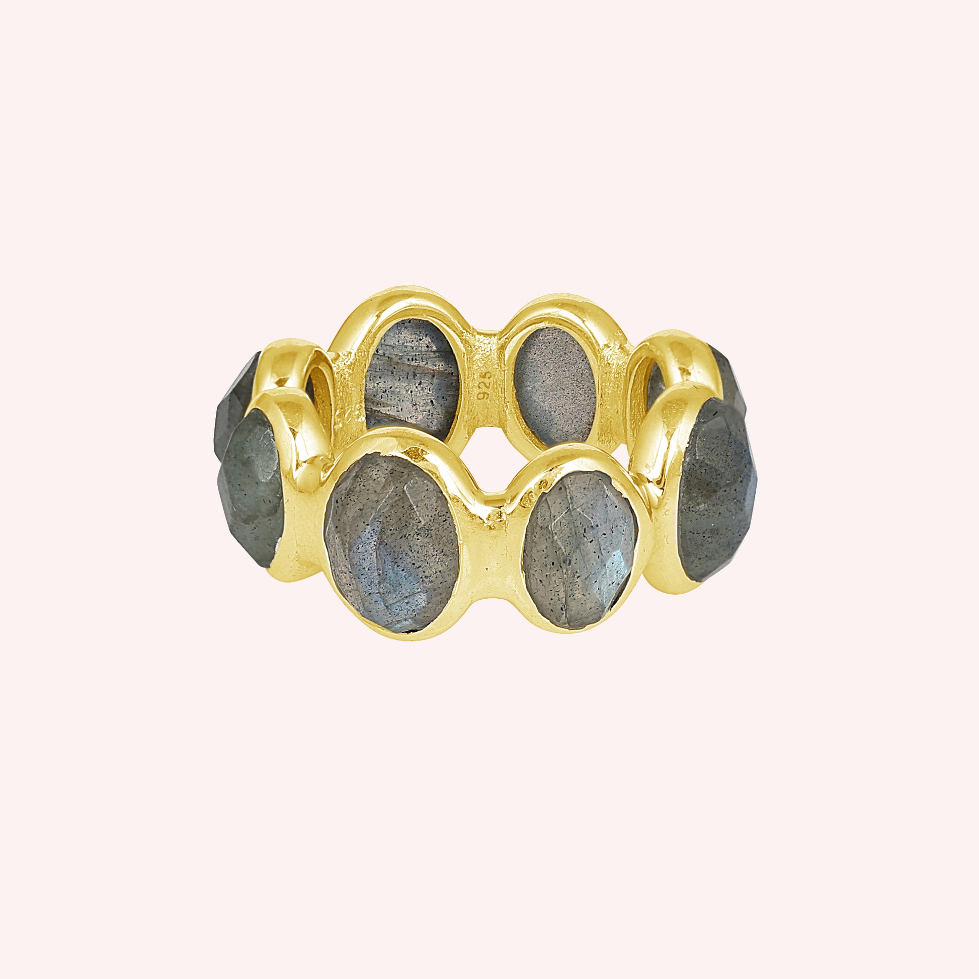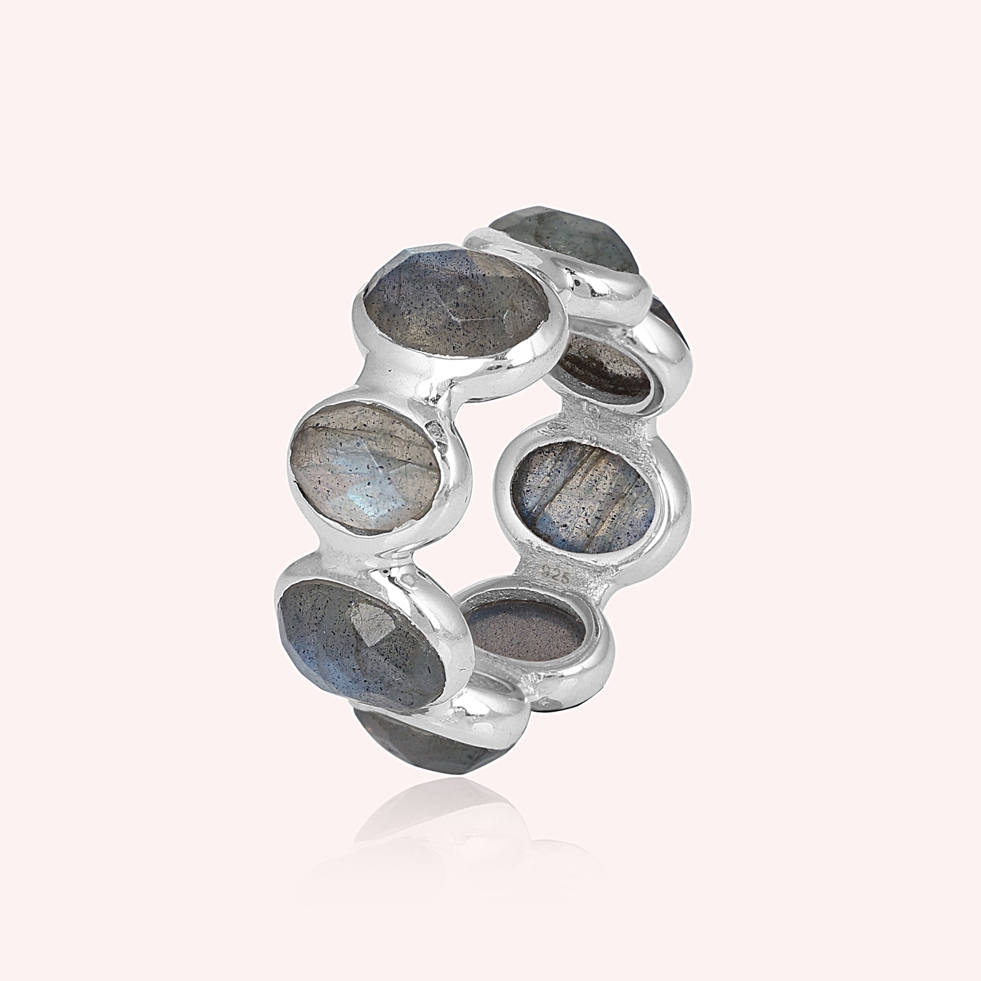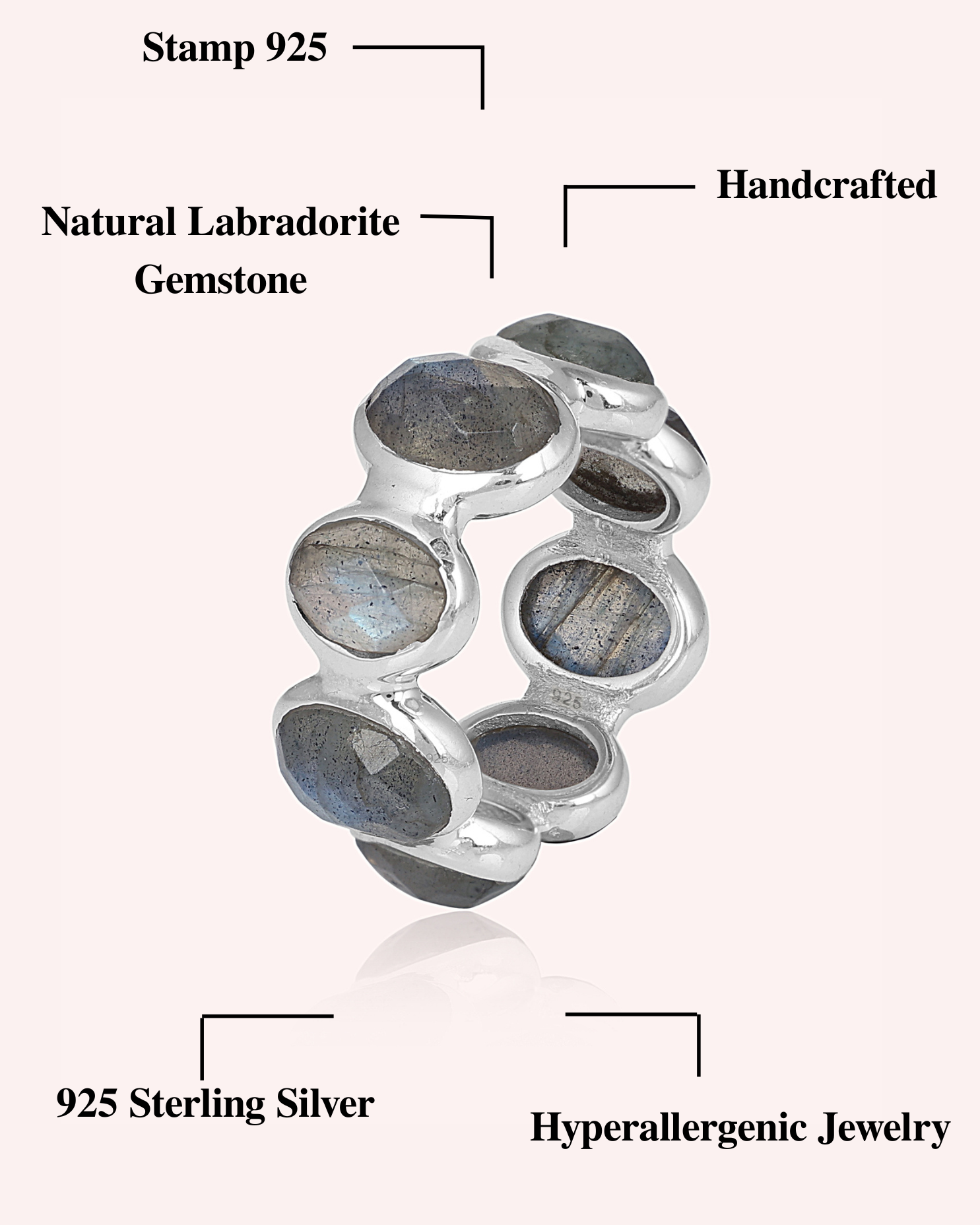 Natural Labradorite Eternity Band Ring 925 Sterling Silver Jewelry for Women
