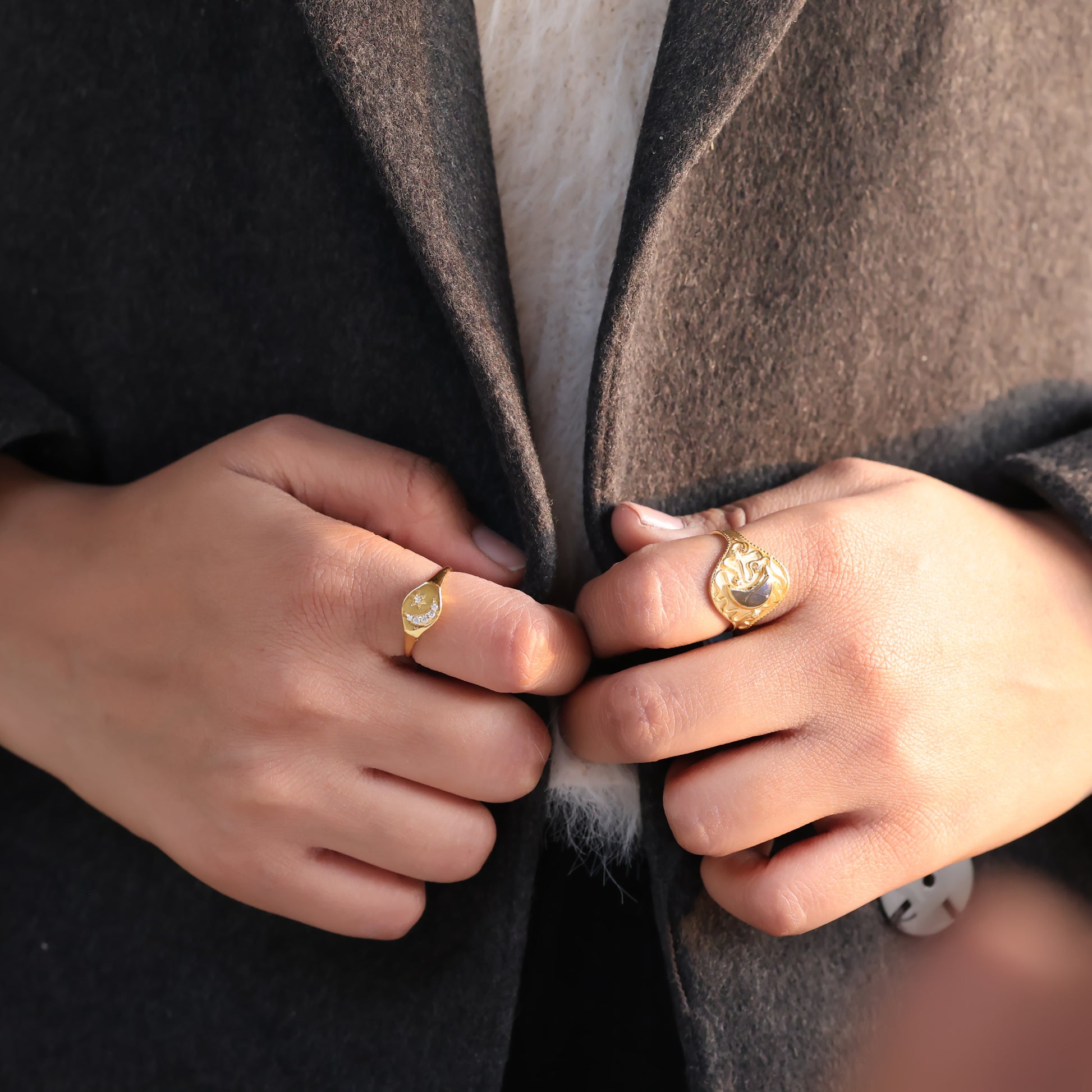 This stunning ring combines the durability of 925 sterling silver with the luxurious touch of gold plating. The sleek and modern design, enhanced by its radiant finish, makes it a versatile accessory for any occasion.